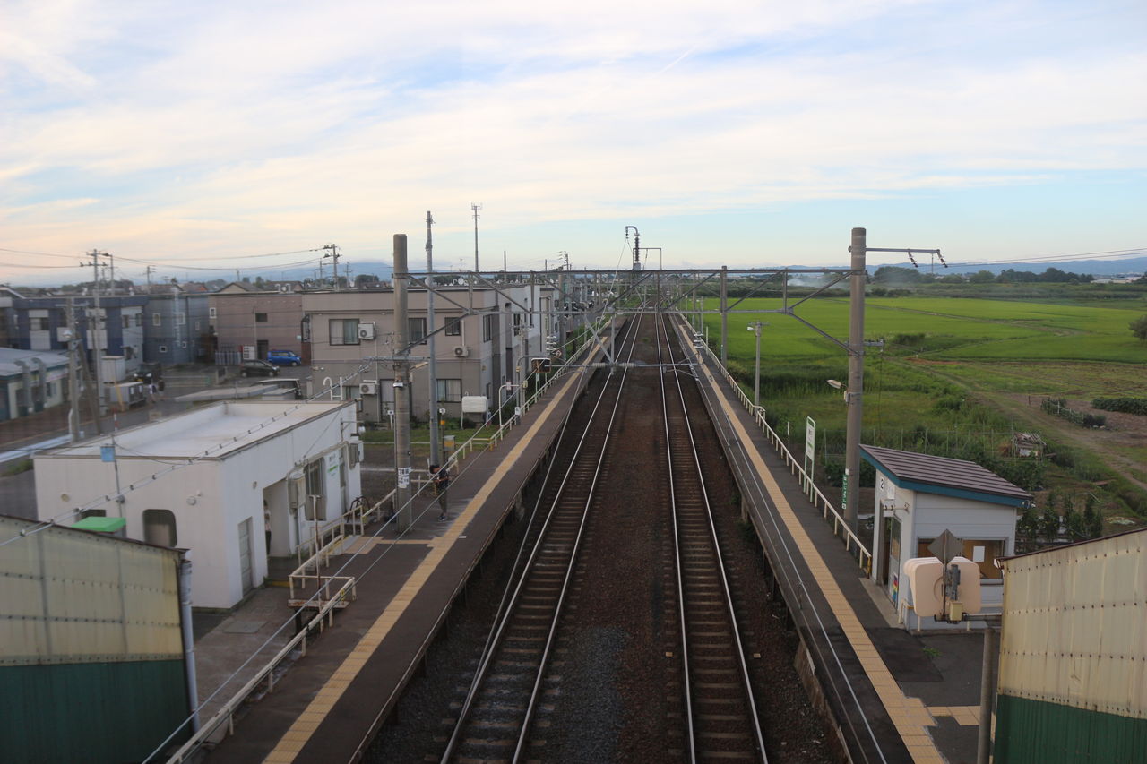 跨線橋からの眺め…線路を挟んでタウンサイドと田んぼサイドできれいに分かれています。