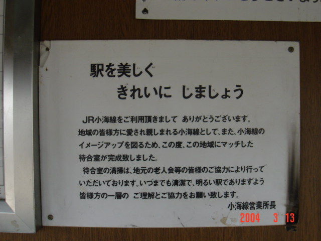 訪問時、駅の待合室内に掲示されていたお願い貼紙です。