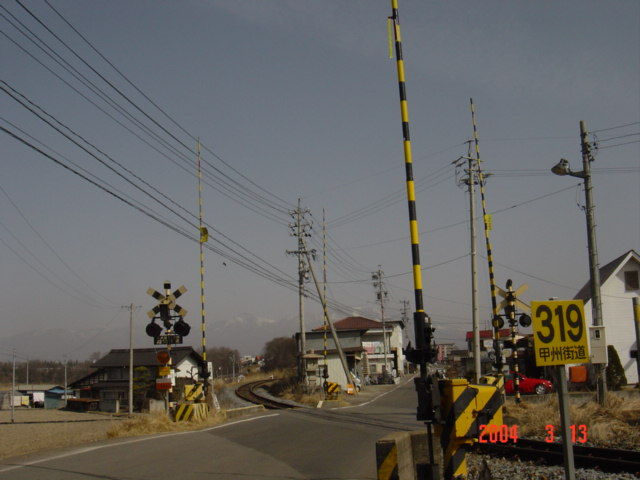 駅の近くにある踏切は「甲州街道」という名称ですが、この甲州街道は国道20号線の甲州街道とは別物で、「佐久甲州街道」といい、韮崎から小諸を結ぶ道路なんだそうです。