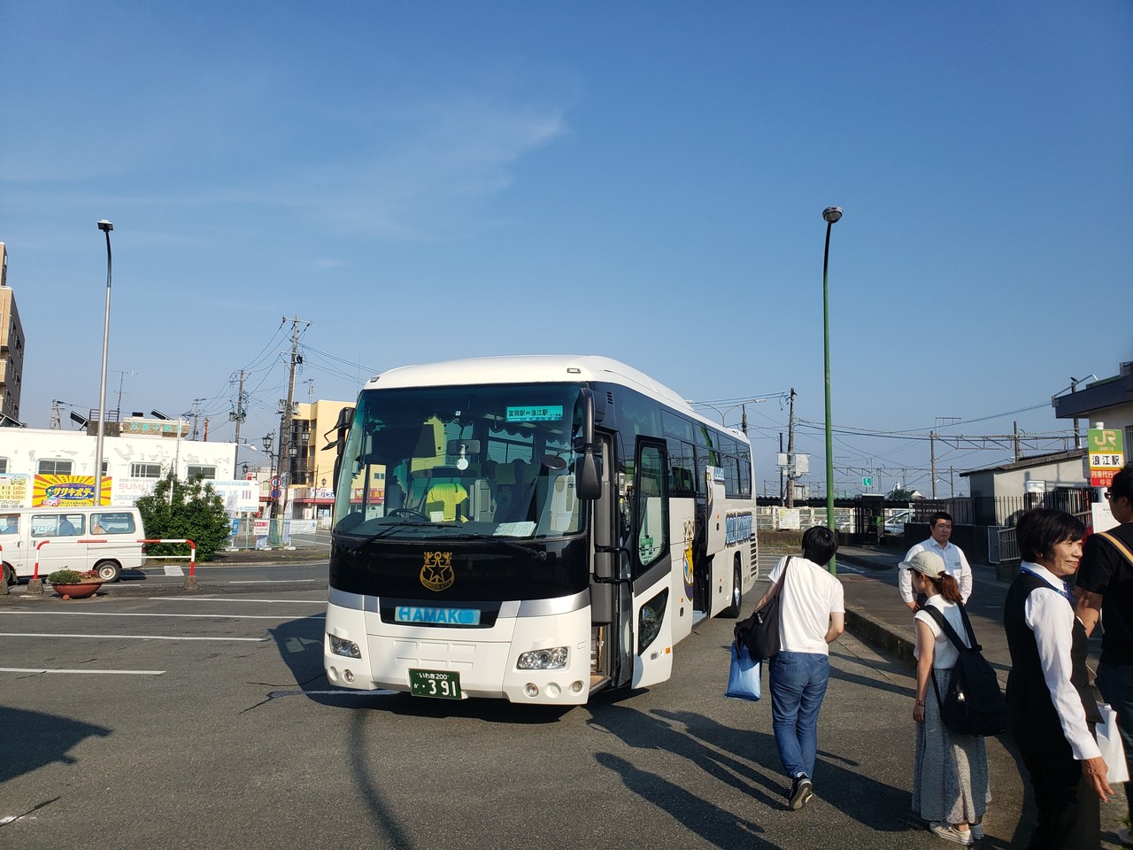 駅前にはJR常磐線代行バスが発着しています。画像は夕方発の富岡駅行き。代行バスには運転士の他に代行バス受託会社の社員がもう一人乗務していました。