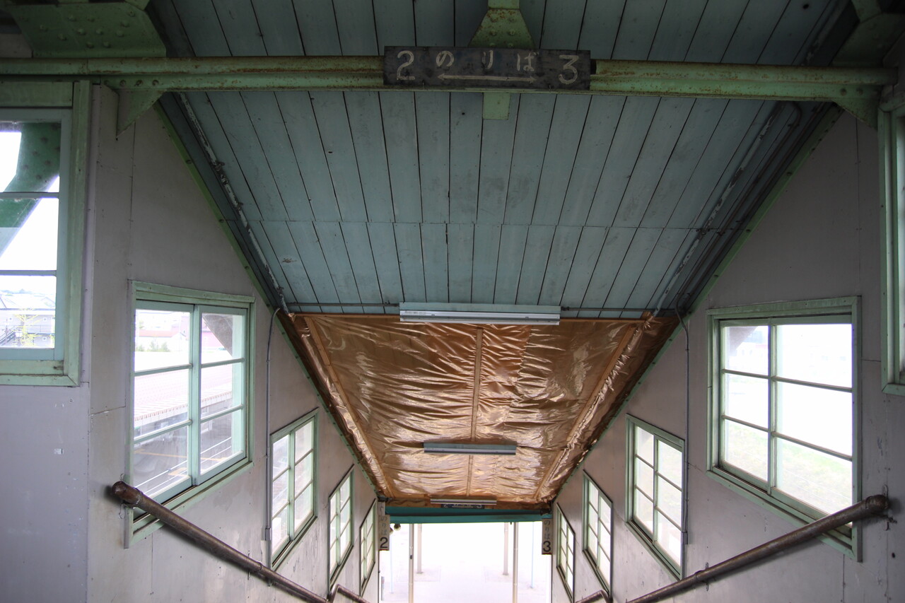 駅舎前の1番線と2.3番線を結ぶ跨線橋はちょっと古いたたずまい。。。