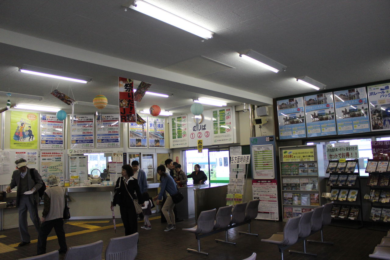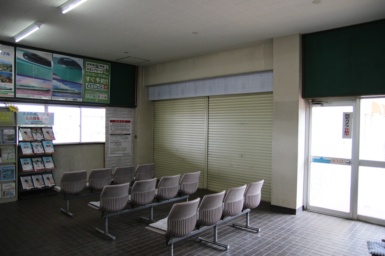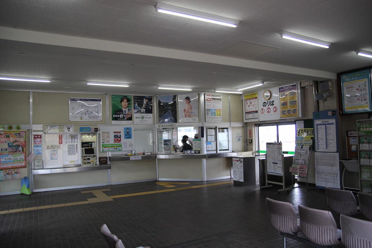 建物内部の様子です。意外と広々としていて、みどりの窓口の他に自動券売機も設置されています。