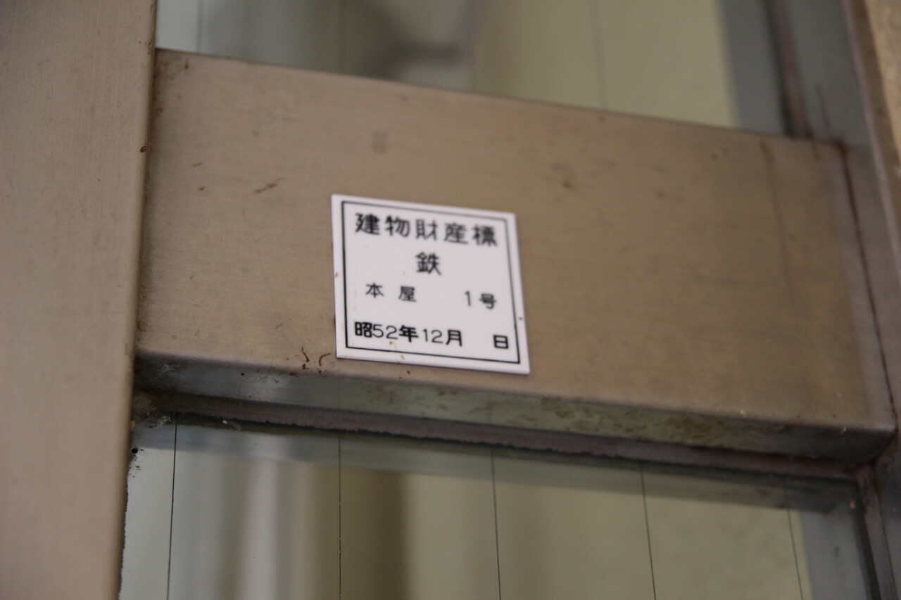 1977(昭和52)年の竣工であることを示す建物財産標です。現在の建物は2代目のようです。