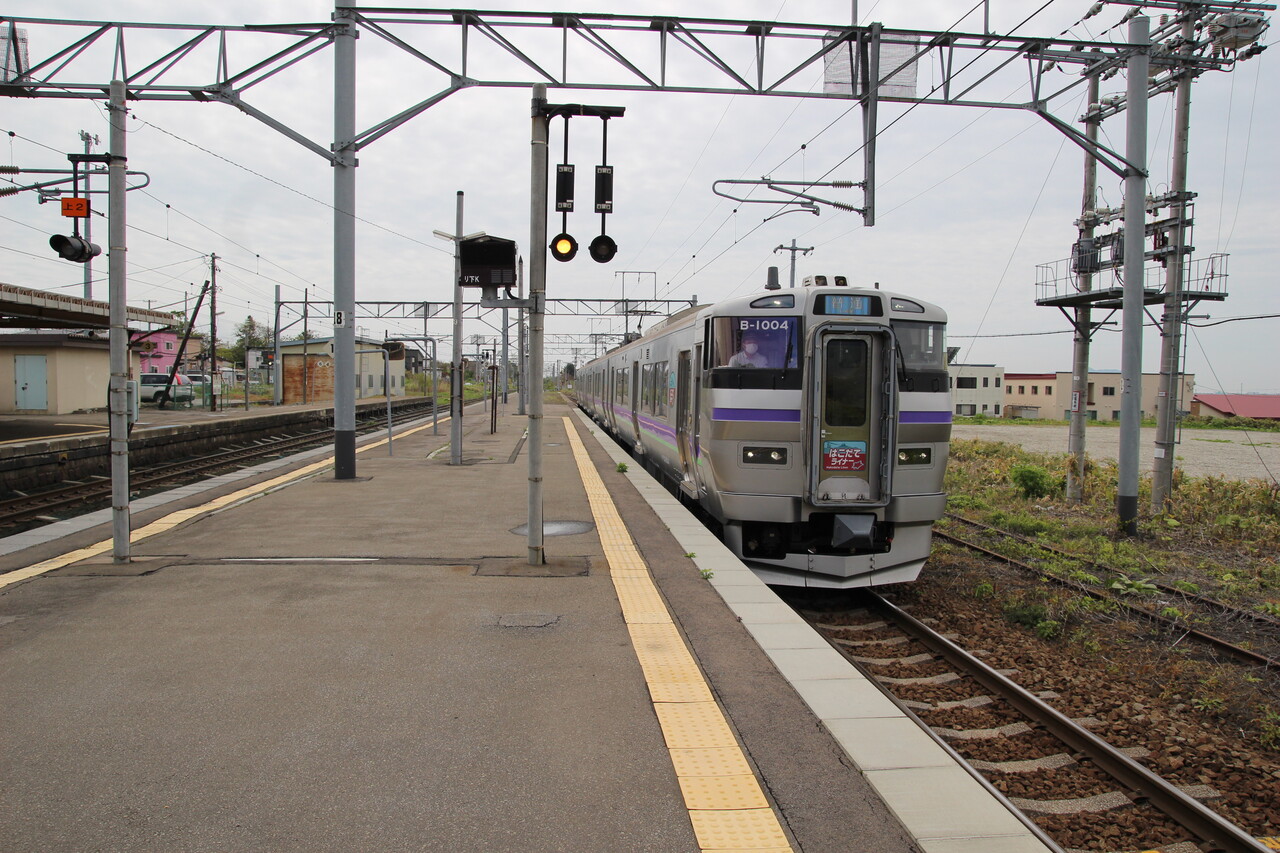 2014年6月訪問時は電化工事の真っ最中。架線柱は完成していますがトロリー線は未共架状態でした。2番線は函館方面への折り返し列車に使用されています。
