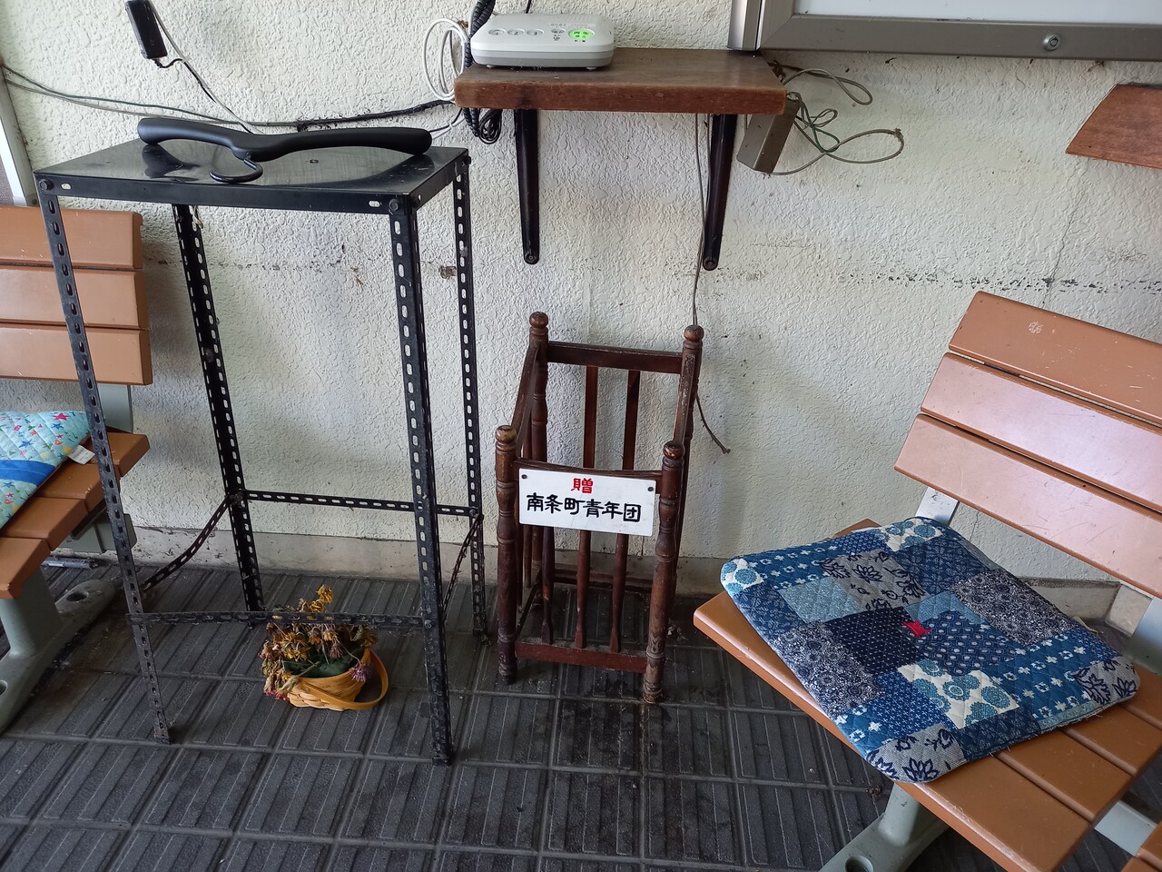 その上には南越前町が設置している有線電話が忽然と置かれています。これ、NTTの公衆電話でもなければ、JR鉄道電話(いわゆる鉄電)でもない、同じような有線ケーブルが引かれている建物の電話機同士が通話可能なようで、この電話機固有の番号は電話機に貼付されているシールに記されている通り3桁となっているようです。この電話がある場所には電話帳のようなものが付き物で置いてある事例が多いのですが、ここにはそれが見当たりません。また、この電話機と回線はどこのどなたが管理・運営をしているのかもよくわかりません(ひょっとして町営?)。