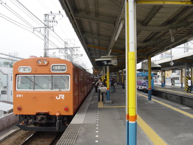 構内は2面3線ですが、乗り場は4番のりばまであります。というのも、2番のりばと3番のりばは同じ線路となっていて、桜島線の列車が到着すると両側の扉を開けて内回り、外回りのどちらのお客さんもスムーズに乗換えができるという仕組みになっているのです。