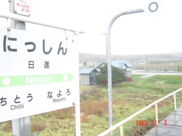 待合室駅舎に掲げられている「日進」の文字の間にあるマークは、2006年まで使われていた名寄市の市章です。現在の名寄市章は隣の風連町との合併により新しいものが使われています。