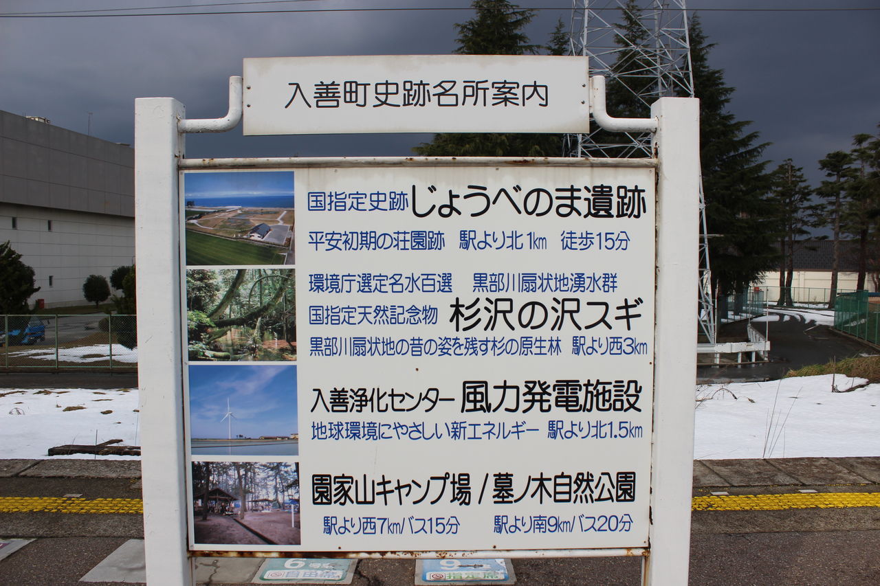 駅から歩いて5分もかからない場所にあるコンビニエンスストアで弁当の温めを待つ間に店員さんに「入善って新幹線が出来たらどこの駅が便利?」と尋ねると「私はたぶん使いません。だってバスが安いですから」と意外なほどに冷めた返事。鉄道で黒部宇奈月温泉駅へ出るとなると富山地方鉄道へ乗り換えなければならず不便、県境を越えて糸魚川へ出るのはもっと不便。「もし使うとなると宇奈月までクルマですね」とのこと。黒部宇奈月温泉駅へは有料道路経由でおよそ25分。新幹線の新駅には無料の駐車場が出来るらしいです。これでクルマを運転できる町民の皆さんは便利かも知れませんが、逆に新幹線で入善町へやってきたいと思うような外様の観光客にとっては不便さが増してしまうのではなかろうかと。まぁこれは入善に限らず新幹線の駅を持たない平行在来線各駅周辺に共通した悩みかも知れません。