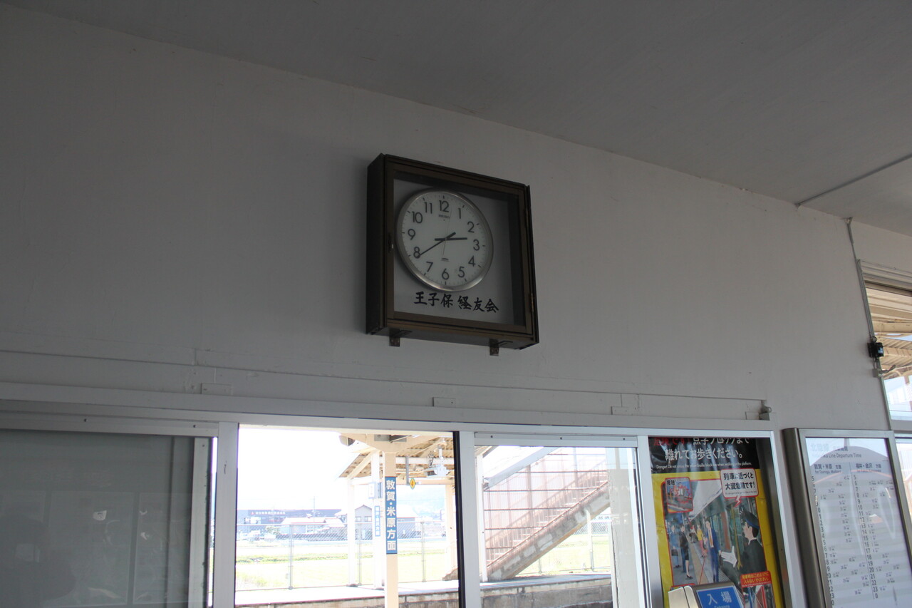 待合室内の壁掛け時計は王子保経友会さんにより寄贈されています。