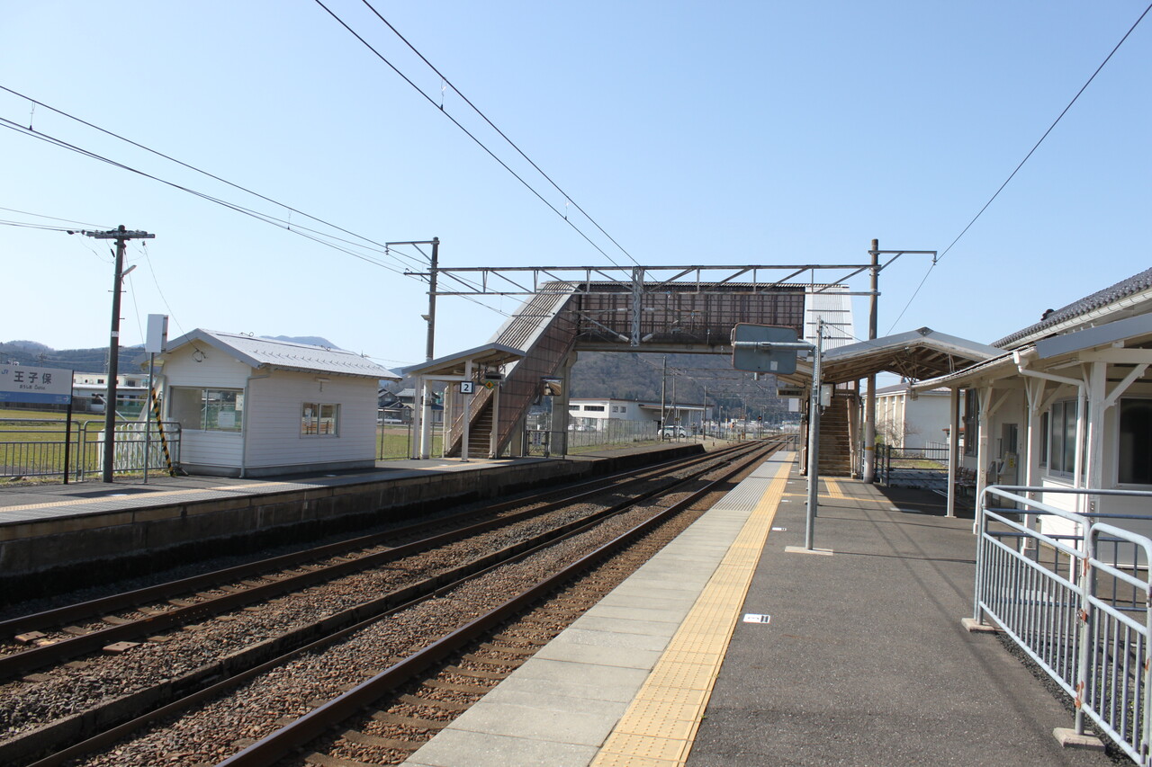 越前市王子保地区にある駅です。当駅が開業した昭和2(1927)年、当駅は南条郡王子保村だったそうです。王子保村は昭和29(1954)年に武生市(平成17年に越前市へ移行)に移行し消滅しています。