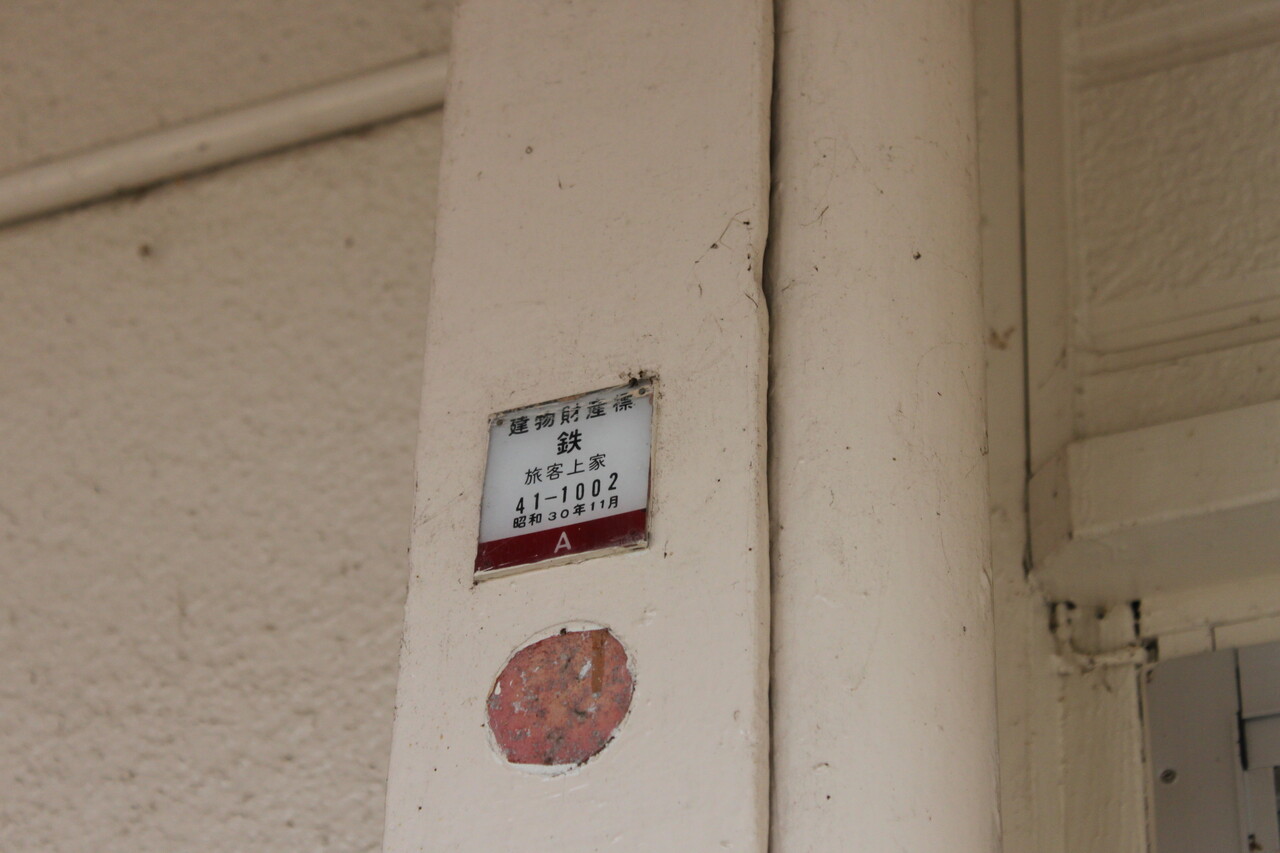 駅で入り口脇にには建物財産標が貼付されていて、昭和30年11月の表示が見えます。