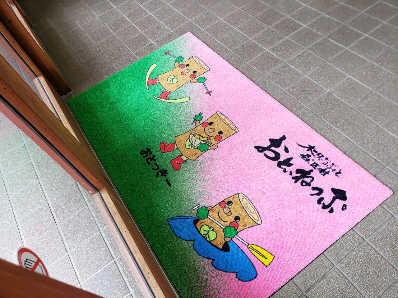 駅舎内には地元ゆるキャラが描かれた「玄関マット」が敷いてあります。