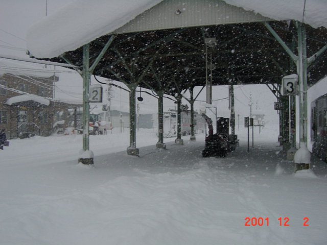 日本の北端を目指す路線らしく、冬季の豪雪は半端じゃありません。除雪をしてもすぐにこの有様。