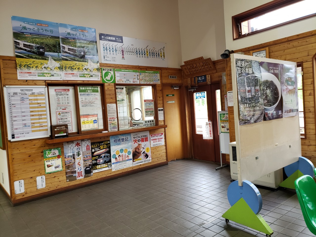 林業が活発な土地柄を反映した構造になっています。自動券売機は設置されておらず、窓口での販売となります。