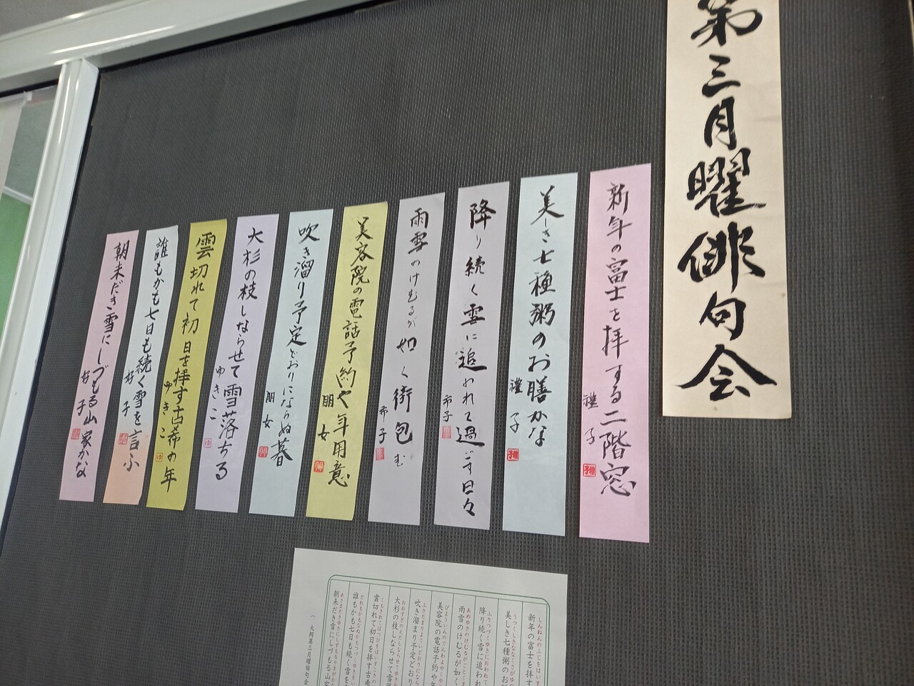 建物内には地元の「第三月曜俳句会」による俳句が掲示されています。「新年の富士を拝む二階窓」はどこの富士のことを指しているのでしょうか。きっと津軽富士こと、岩木山のことなんでしょうけど。
