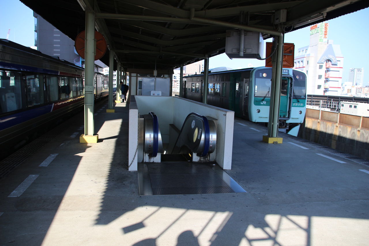都市部っぽい高架駅です。どうして高架なのか???当駅の高架の歴史は意外と古く1976年に高架駅舎が共用を開始しています。道路交通の渋滞緩和が目的であればホームの高さは地上2階レベルでも問題が無いはずなのに、当駅のホームはさらに上の3階に設置されています。これは近隣を走る琴電琴平線を跨ぐ必要があるから。琴平線のは高徳線を跨ぐために当初より築堤で高いところを走っていましたが、当時の国鉄はそれをさらに高いところで跨ぐようにと高架化したようです。