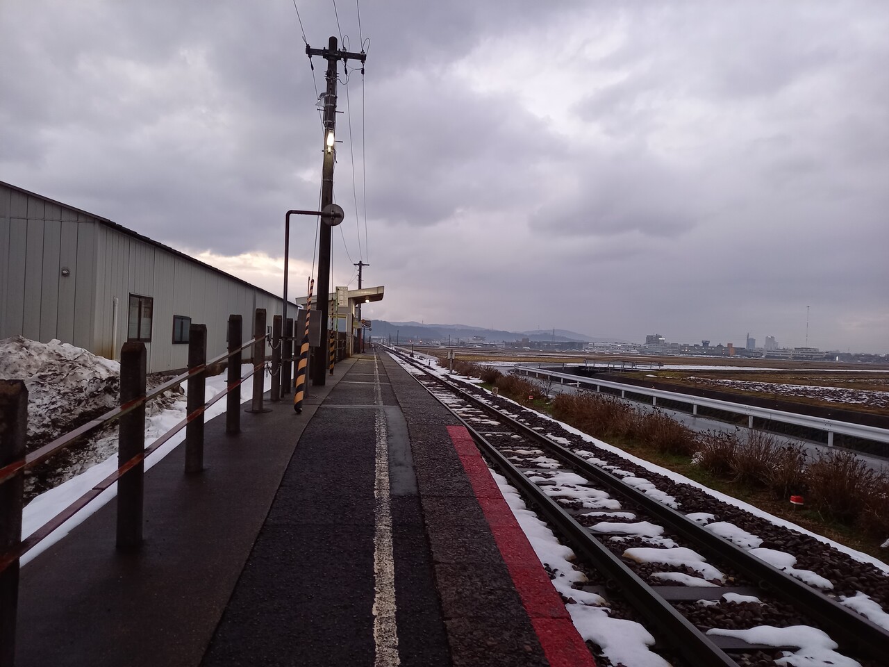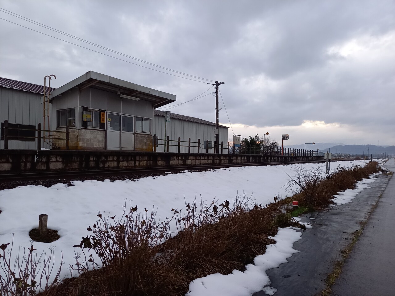 線路向こうから駅全景を見た図です。