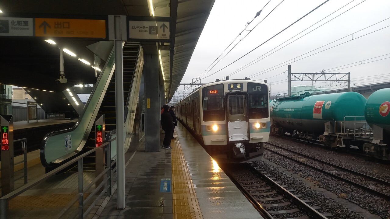 構内は2面3線。本線は1番線と3番線で、2番線は列車退避に使うことが多いようです。といっても当駅は甲府駅の隣なので列車退避はあまりなく、それでも全くないわけではなく、下り列車の数本となっています。