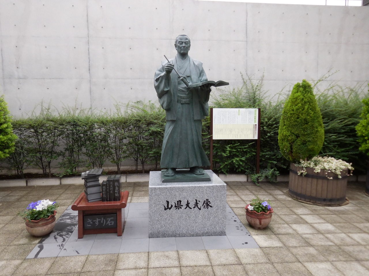 南口には山県大弐さんの銅像が置かれています。江戸時代中期の儒学者・思想家さんだったようで、銅像でもペンとノートを持っています。