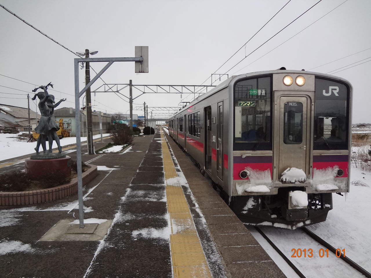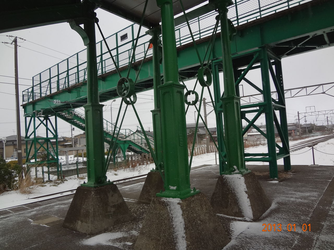 酒田市と合併して消滅した旧飽海郡平田町の中心駅として機能する駅です。駅舎は1914(大正3)年からの旧来の建物から2012年12月に改築され、新しくなっています。駅の横に見える跨線橋は古くからあるものですが、駅舎と一体化されていてとても便利になっています。