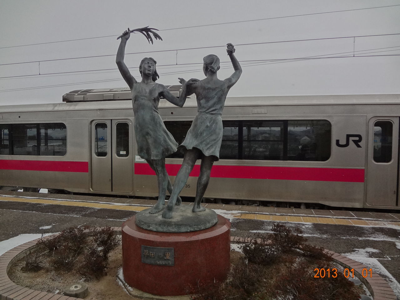 ホームには「平田の里」というブロンズ像が設置されています。この手の象は旧平田町出身の彫刻家・石黒光二氏により作られ、町内14か所に点在しているんだそうです。
