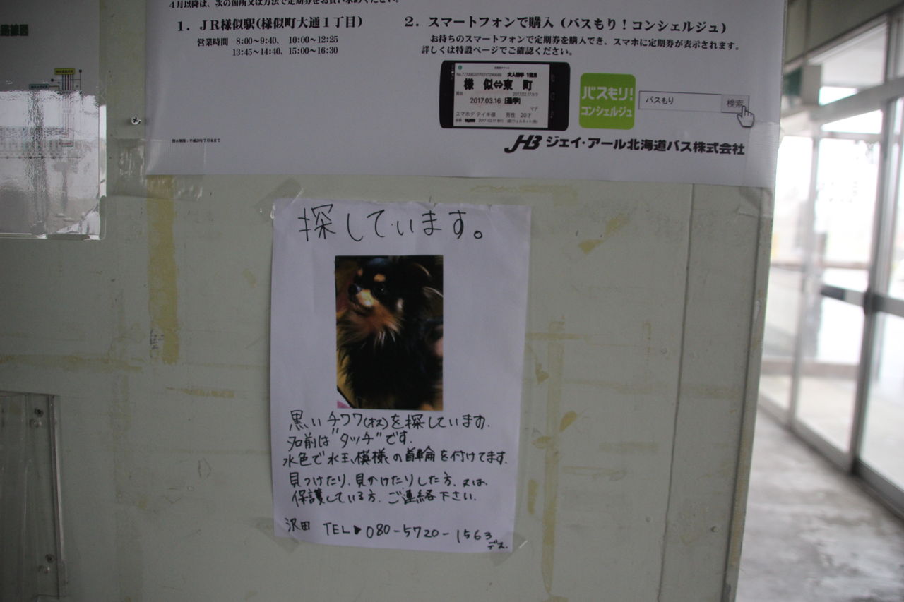 ところで訪問をしたとき、迷い犬の貼り紙が。。。チワワ犬のタッチくん、無事に戻ってくるといいなぁ。