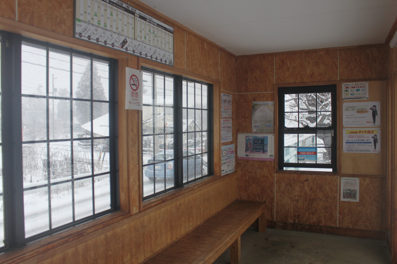 ホームには待合室があります。平成17(2005)に改築されています。それまでの待合室は密閉式ではなかったようで、取材日のような豪雪の日はさぞや辛かったでしょう。