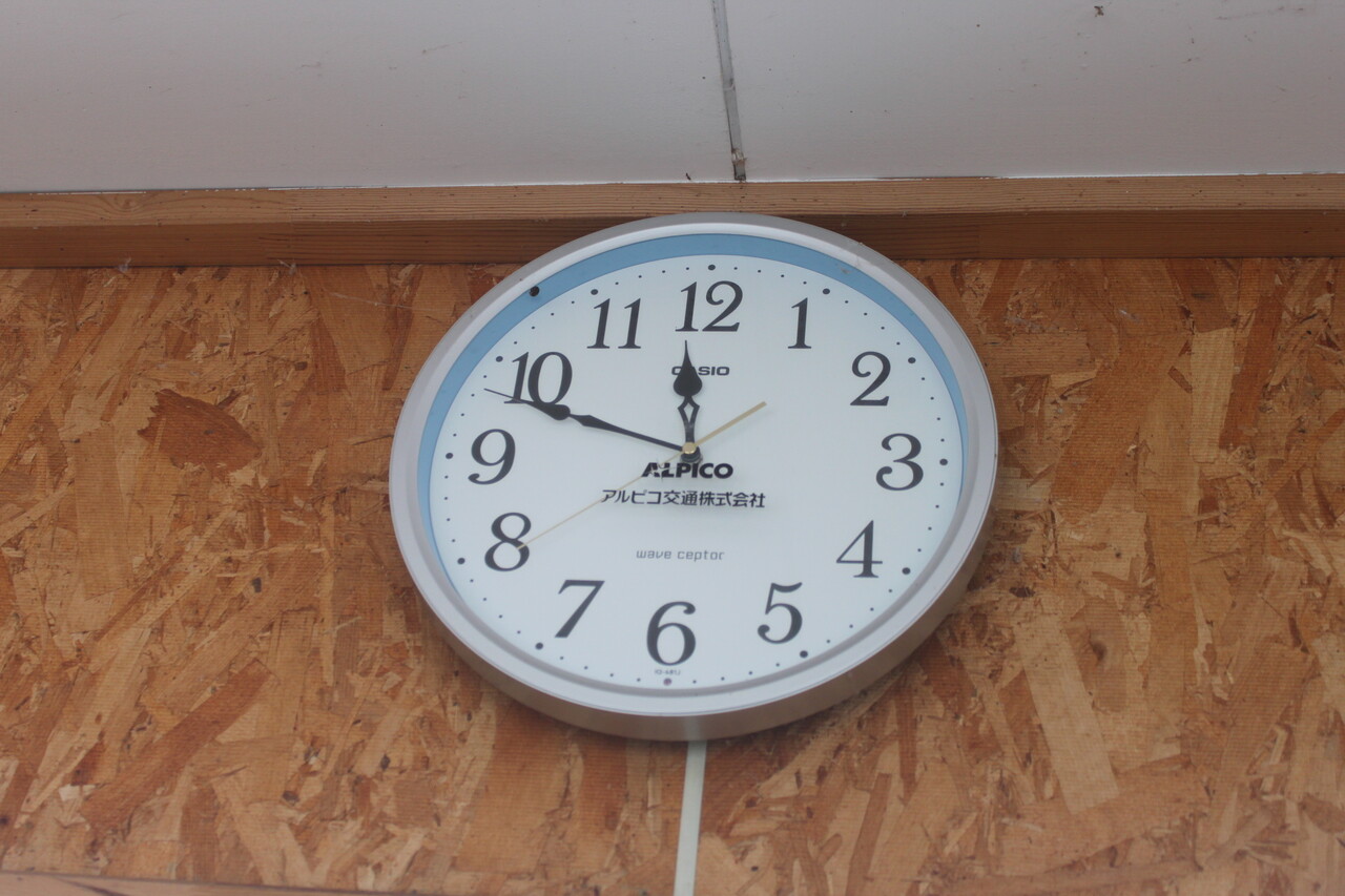 待合室内の壁掛時計はアルピコ交通株式会社の社名がついたものです。