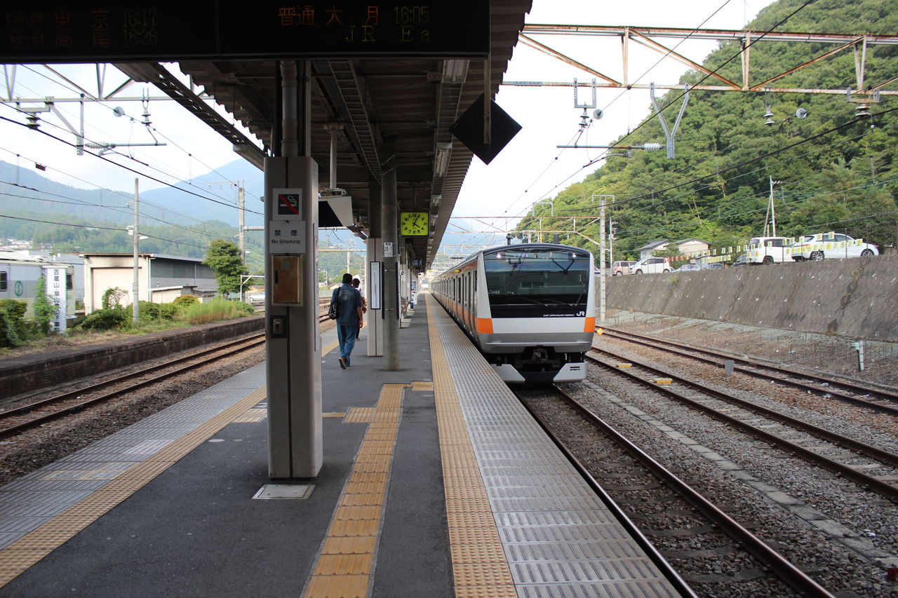 東京駅からのオレンジ帯の10両編成がやってくる大月駅の一つ手前の駅です。