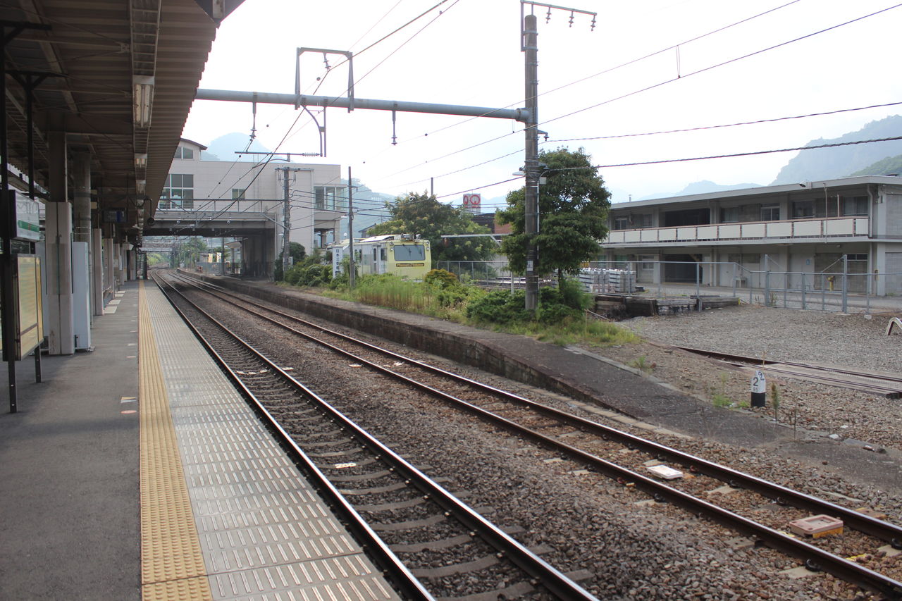 構内には上下いずれにも側線が1本ずつあり、貨物列車が旅客列車を退避することがあります。1番線側の側線の脇には使われなくなった短く古いホームがあります。
