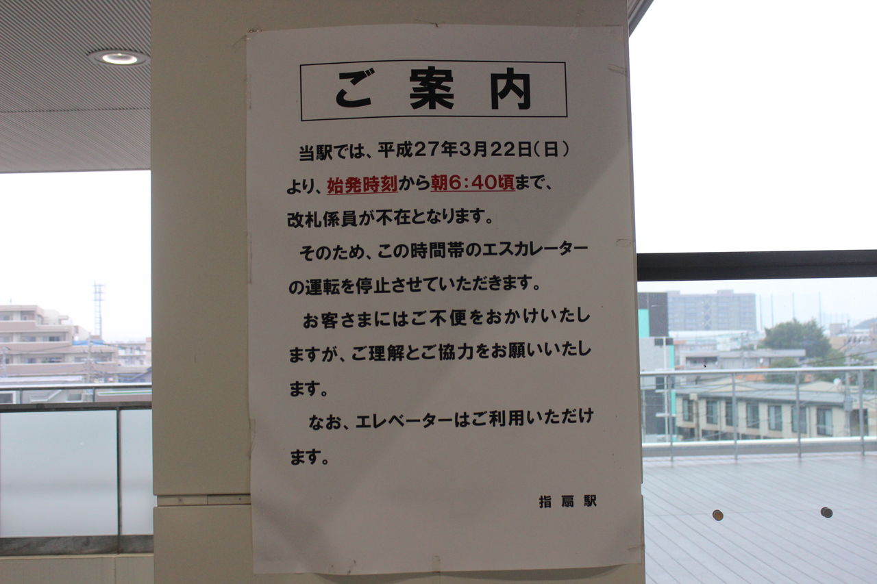 当駅にはバリアフリーの一環でホームと改札階を結ぶエスカレータが設置されていますが、始発から6時40分ころまでは係員不在を理由にエスカレータが停止しているそうです。エレベータは運転されているそうですが、なぜこのような措置なのかはよくわかりません(節電目的?!)。