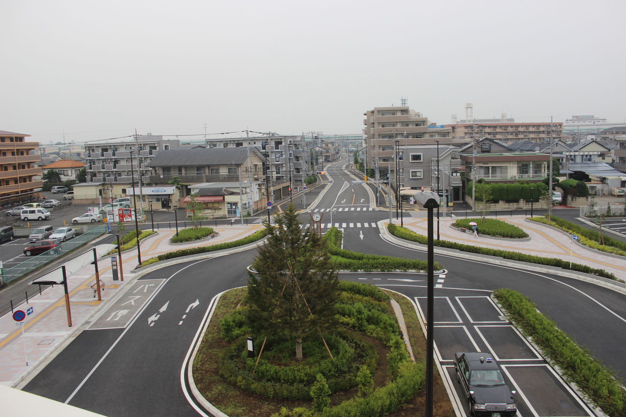 そのテラスからの眺望…商店より宅地といった感じの北口です。こちら側からはJR上尾駅へショートカットできるバス路線が東武バスにより設定されていますが、本数は曜日によりまちまちで、土曜・休日は10時台から15時台までおよそ12時台を除いて1時間おきに発車していますが、月曜~金曜は10時07分、16時55分、22時17分の3本のみしか設定されていません(それ以外は途中バス停までの行き先となります)。