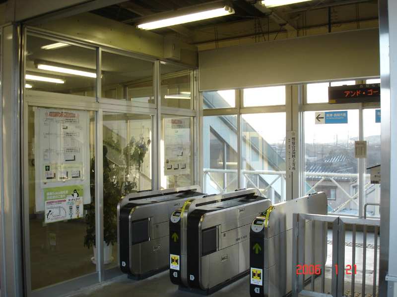 当駅は開業当初、係員の配置が無い状態が多く、時間帯を区切って社員が窓口で乗車券類を発売しに着ていたどこかの簡易委託駅のような体裁の営業でした。その当時、ワンマン運転列車は客扱いをする扉を無人駅モードで運用していました。ところが2005年3月のダイヤ改正から自動改札機を稼動させるために駅係員を常駐配置とし、ワンマン列車も当駅の乗降では扉をすべて開閉させるパターンに変更しました。