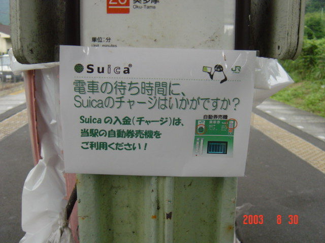 訪問当時、このような手作り感溢れる案内の貼り紙が点在していました。特にSuicaチャージを促す内容のものは「あっ、そうだそうだ」と思わず券売機に向かってしまいたくなります。