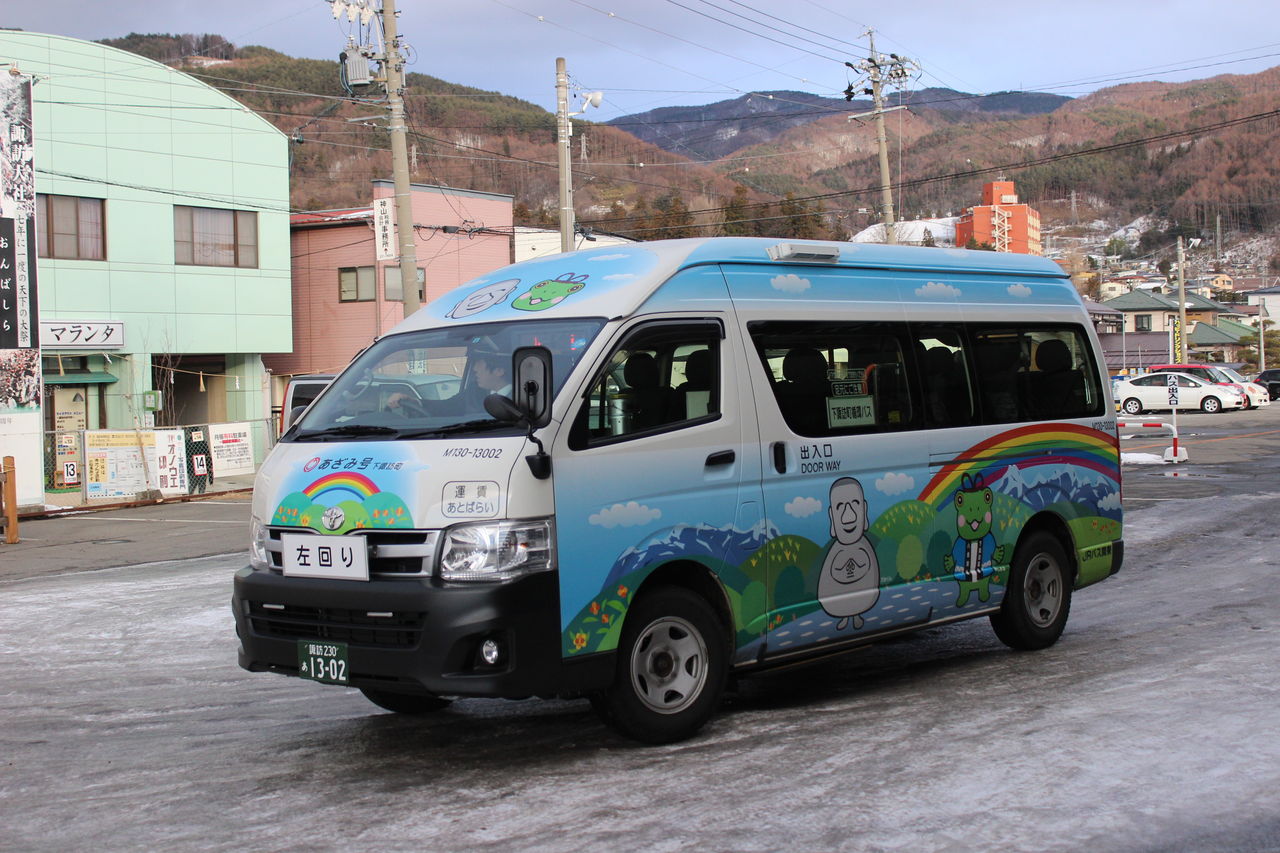 これは諏訪市のコミュニティバスです。塗装が凄く面白いですな。