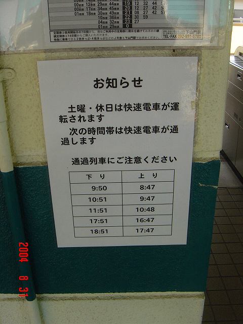 訪問当時は快速列車の通過時間が記された用紙が貼られていました。