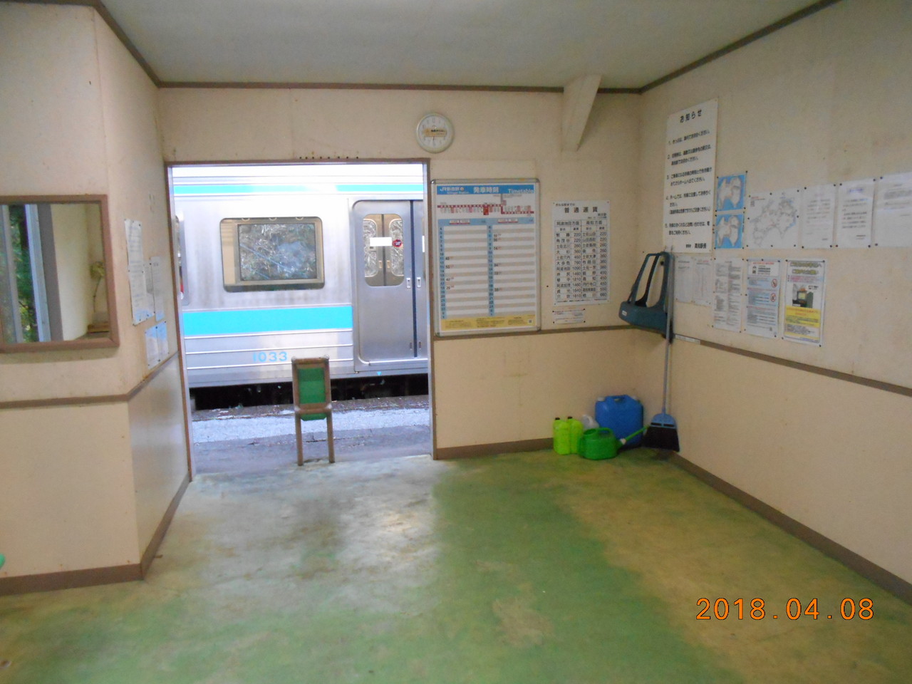 駅舎内の様子です。窓口跡っぽい小窓はありますが、当駅は無人駅です。
