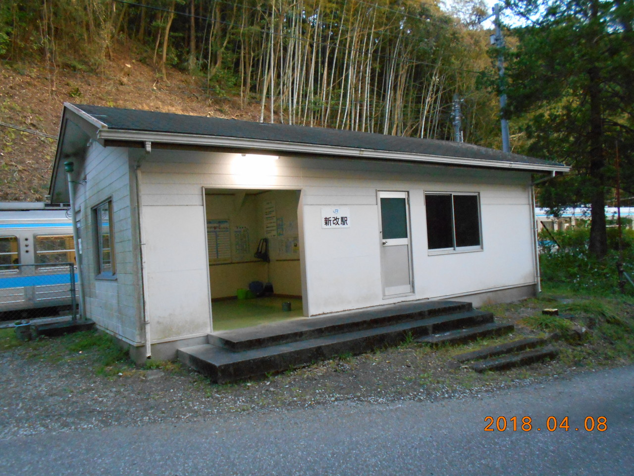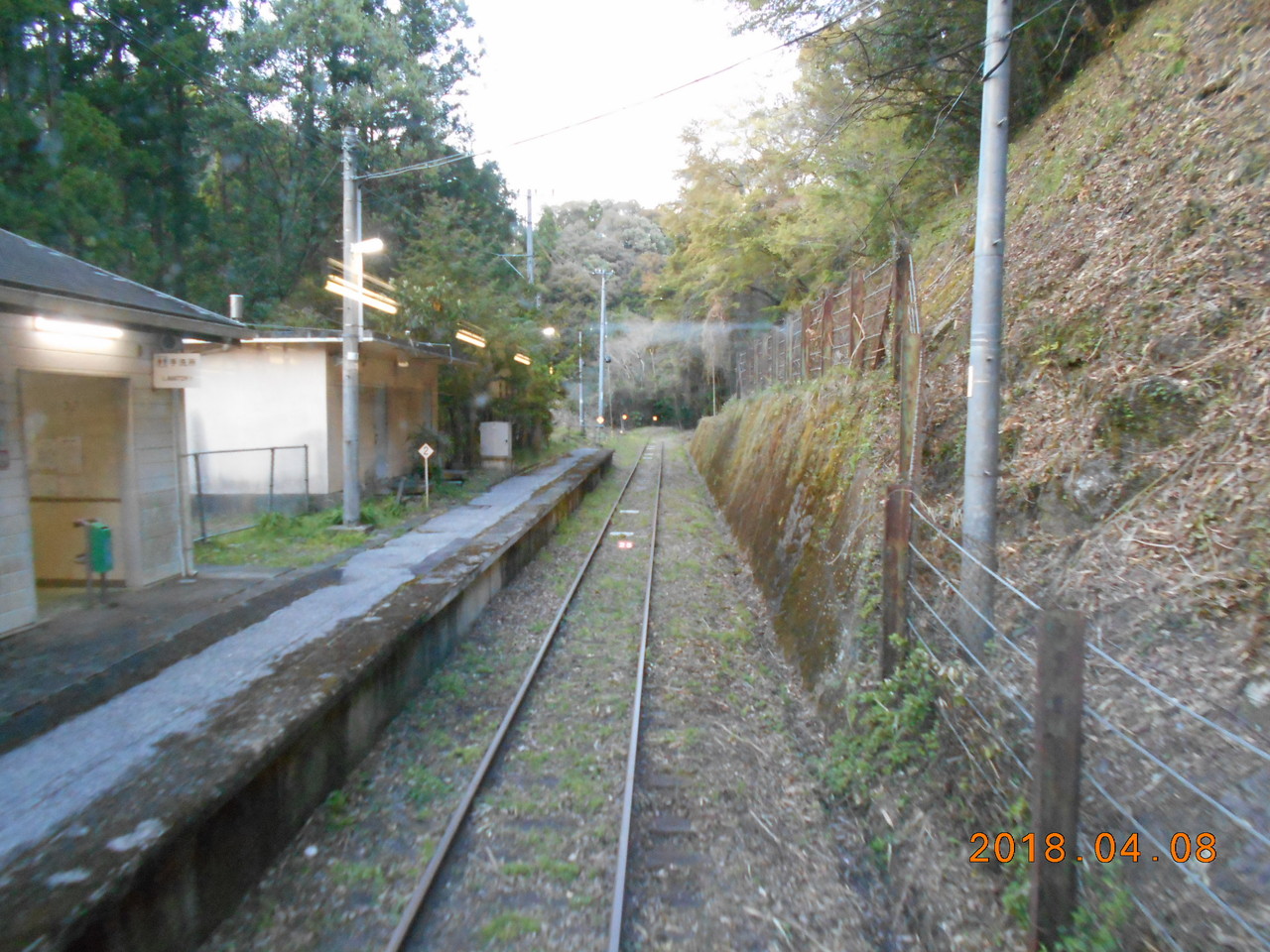 山間の中にあるスイッチバック式の駅です。駅舎待合室があります。