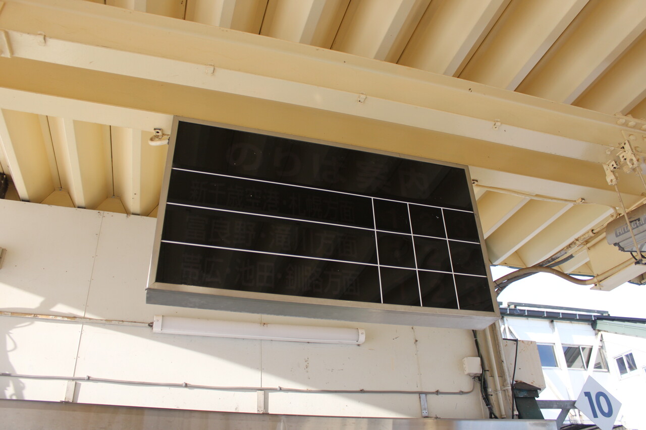 当駅からのタクシー料金を記したはずの看板ですが、肝心の料金が書かれていません。劣化により消えたのか、それとも運賃改定などで敢えて消したのか。。。それにしても当駅から帯広空港までタクシーとはなかなかチャレンジングな、、、