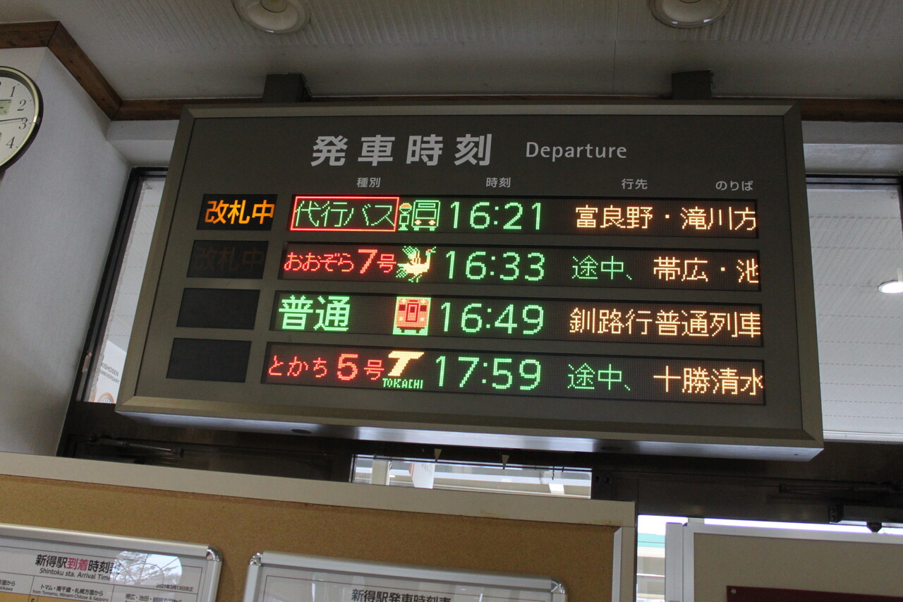 東鹿越駅までの根室線列車代行バスは駅前から発着しています。