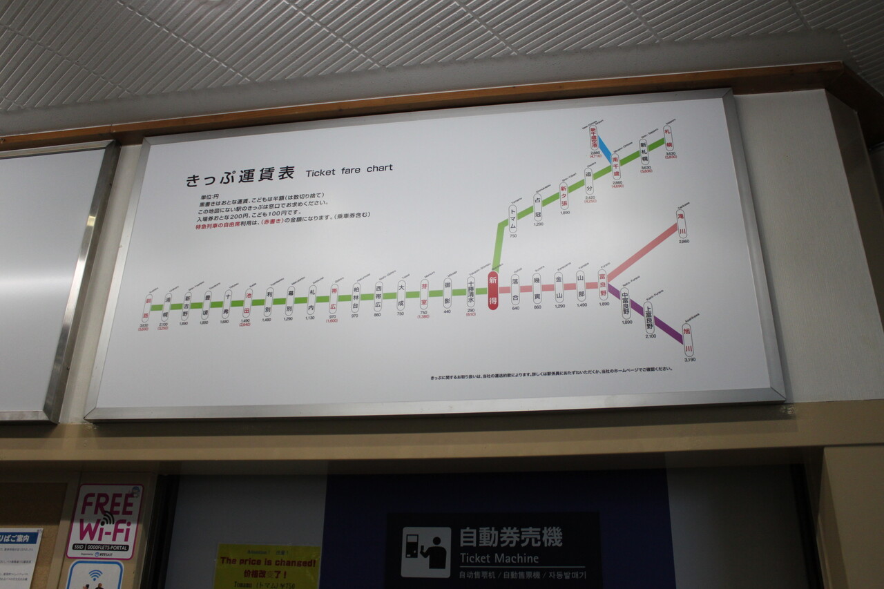 2022年2月撮影の運賃表です。隣のトマム駅までなんと750円もします。
