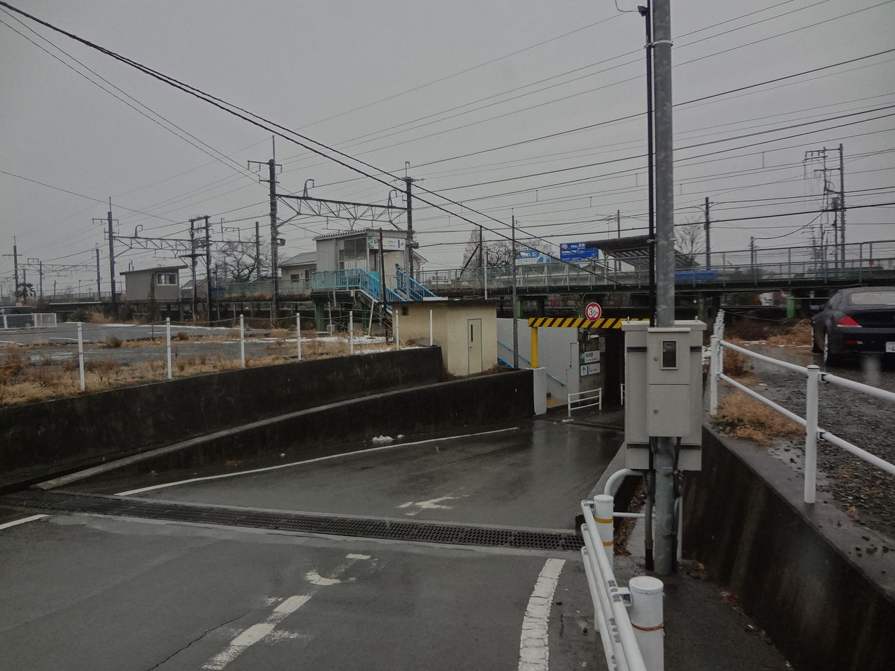 鉄道をくぐるアンダーパスの中ほどにある階段を上がります。