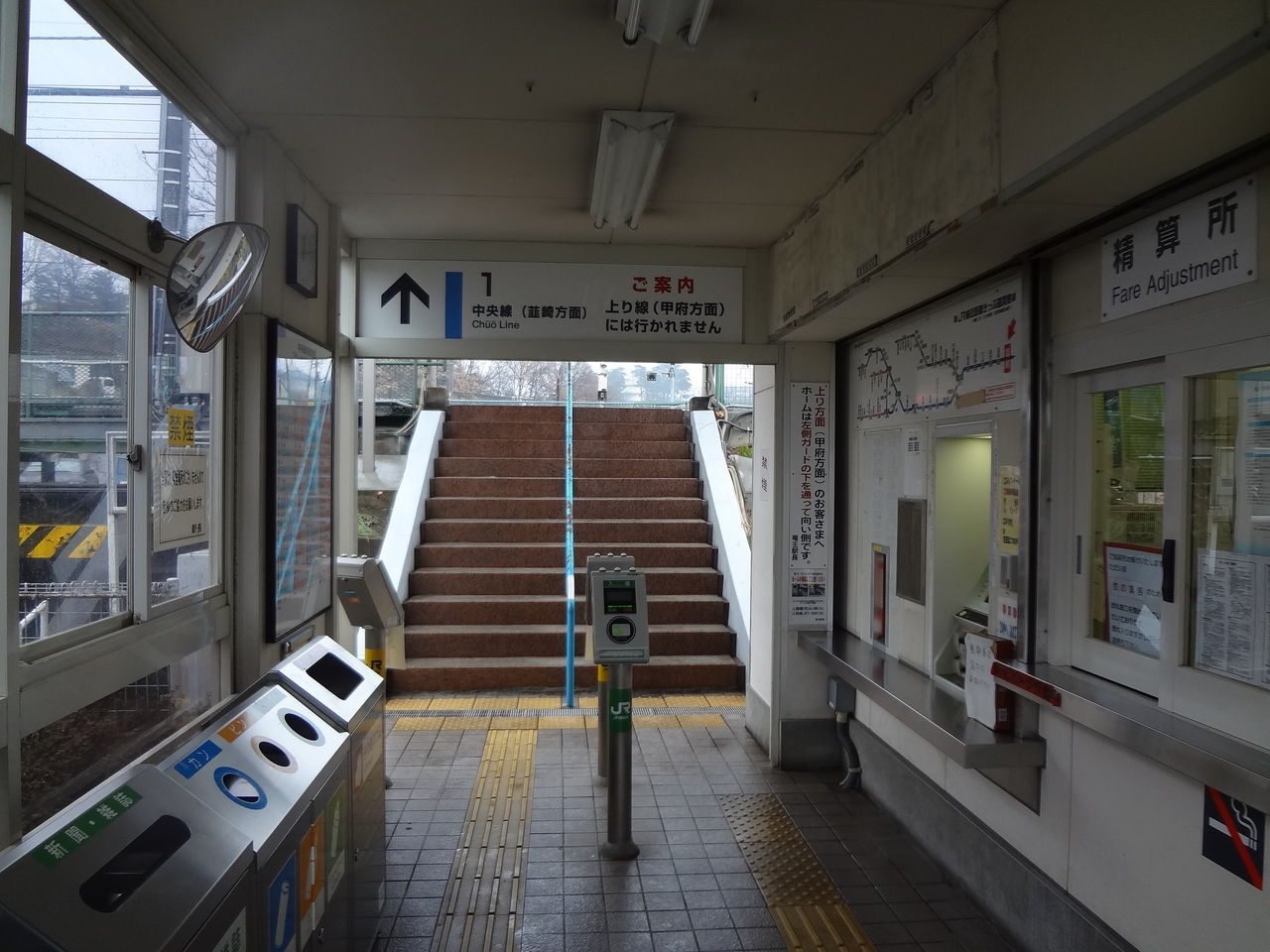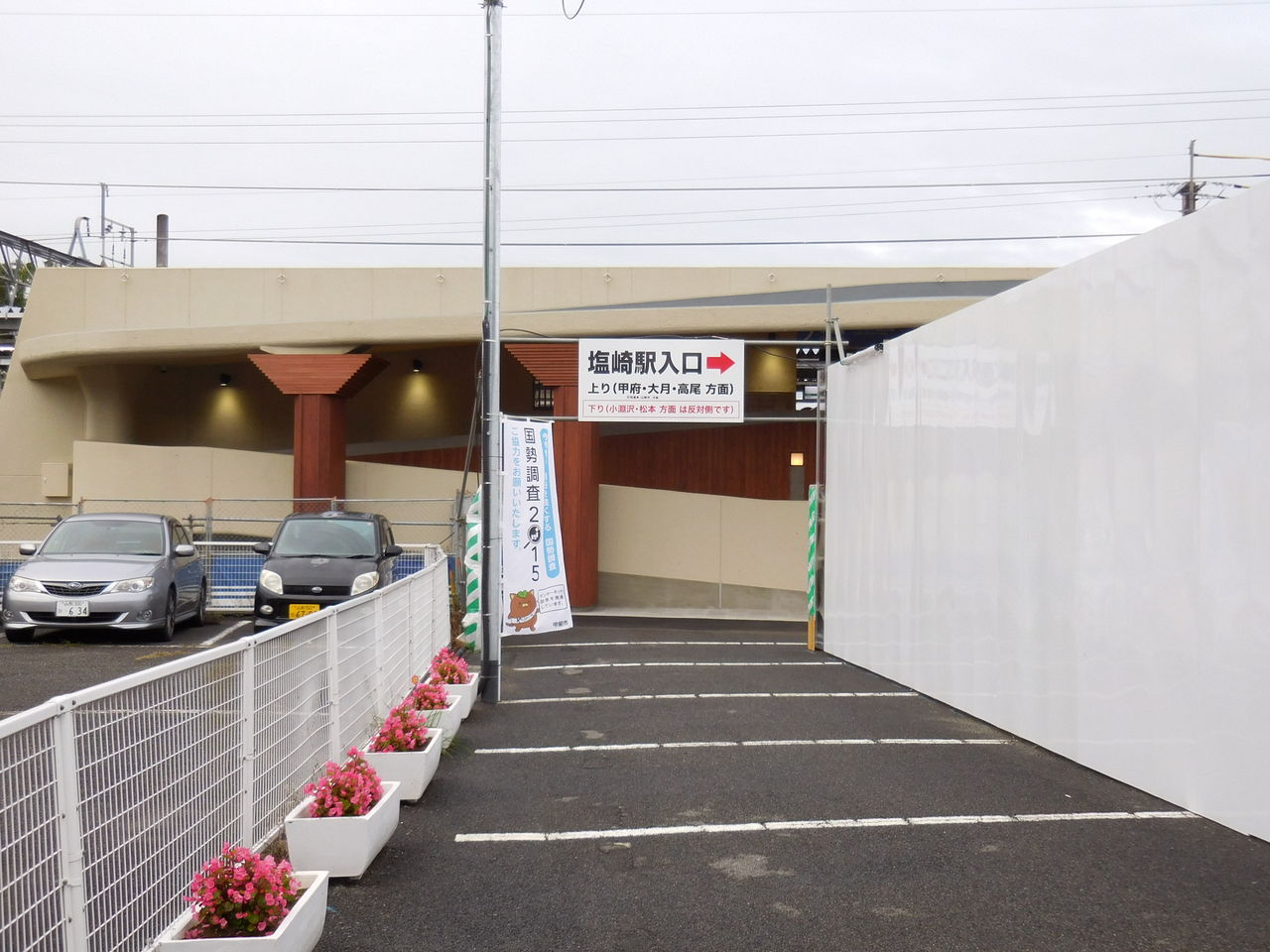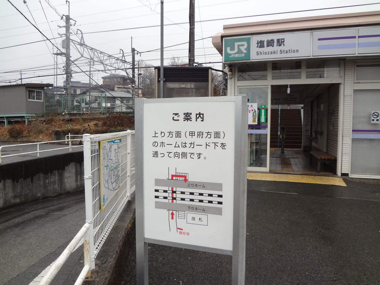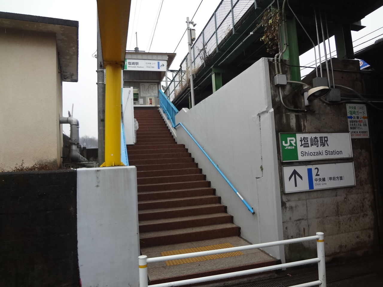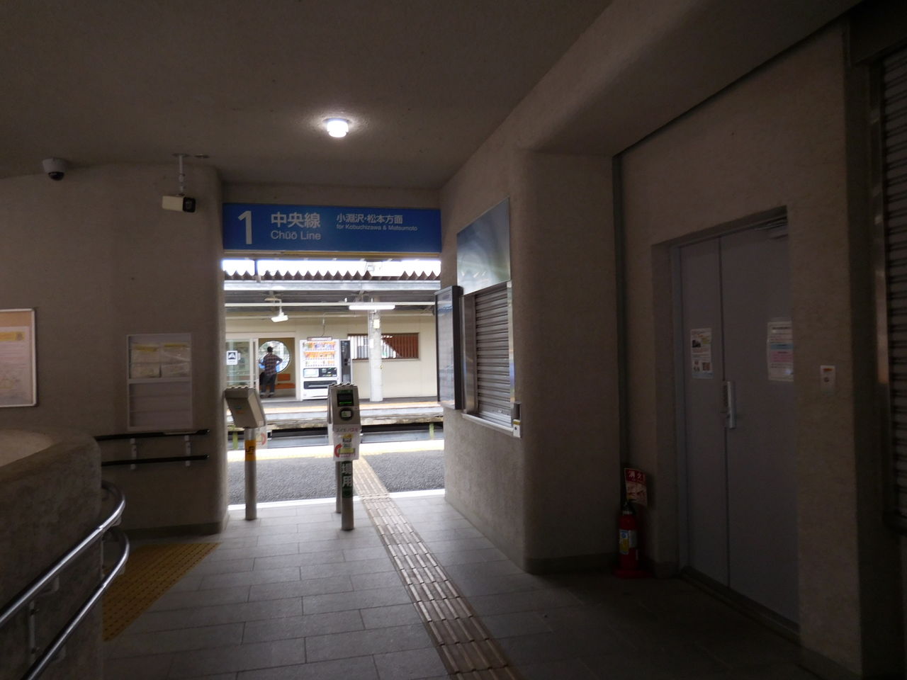 かつて「ジェイ・ショップ塩崎」だった改札口は下り線(韮崎、塩尻方面)行きホーム専用でして、甲府、新宿方面乗り場は別の出入り口から乗車します。それがこれ。