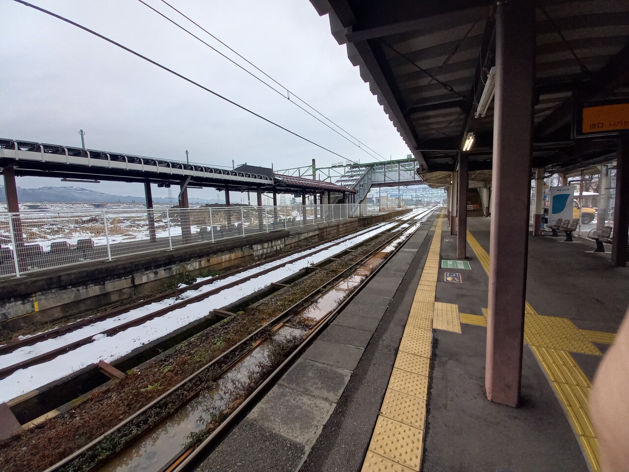 ホームの様子です。旧2番線は使用停止状態となっていて、ホームにはフェンスが設置されています。