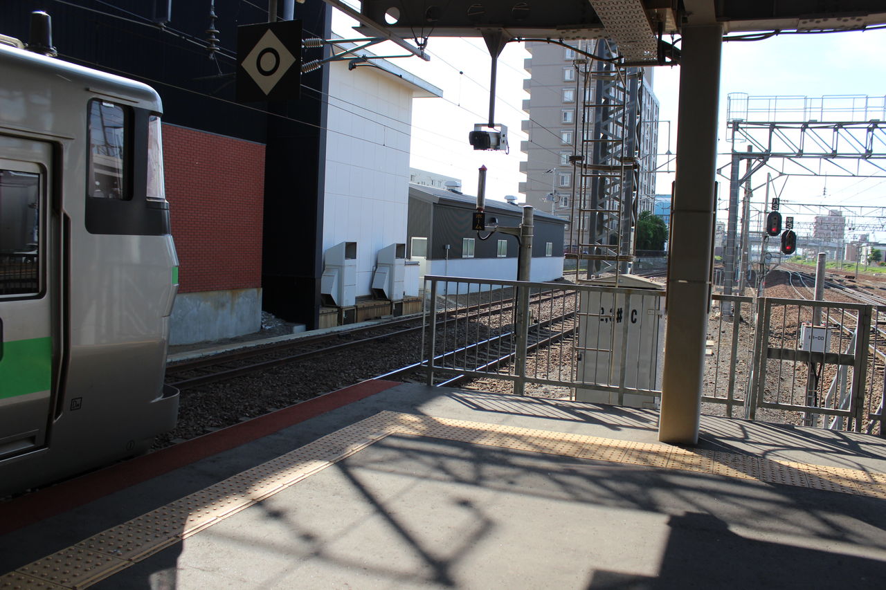 千歳線と函館線の分岐駅です。両線の線路はこの先、平和駅の先まで平行していますが、函館線側に平和駅が設置されていないことから、営業上は当駅が分岐点となっています。冒頭↑の駅名標は函館線。