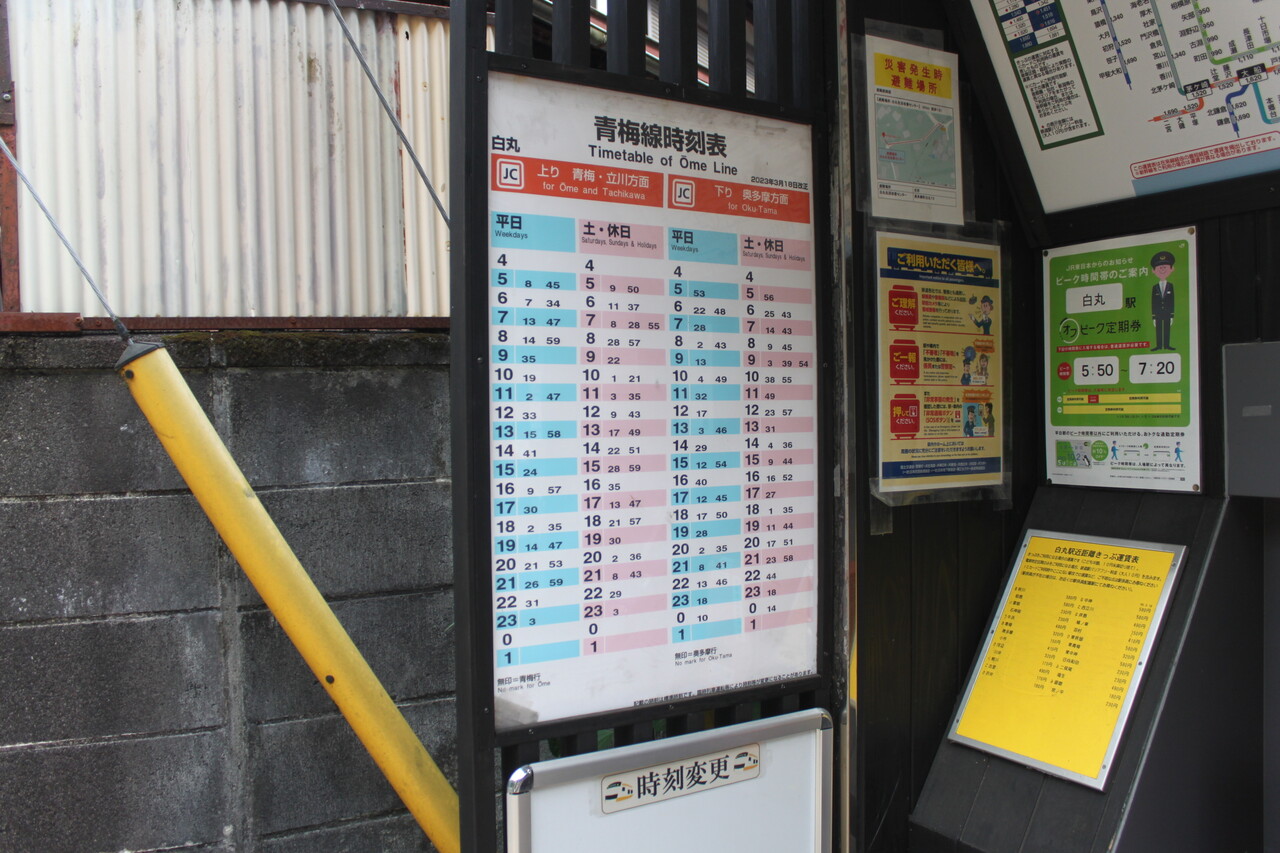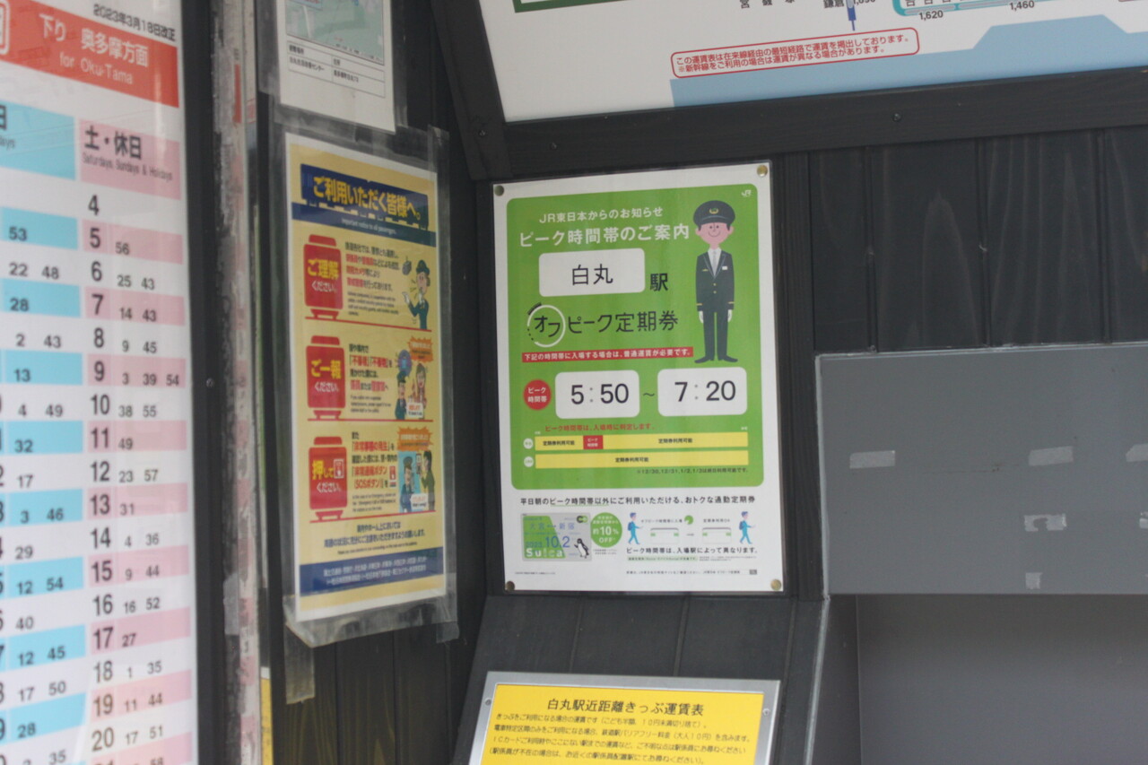 JR東日本が発売しているオフピーク定期券のポスターによると、当駅の利用ピーク時間は5:50~7:20とあります。訪問時のダイヤでこの時間に発車する上り列車は6:07・6:34・7:13の3本。7時13分発の青梅行に乗ると青梅で通勤快速に接続し、立川8:24・新宿8:59・東京9:14となります。
