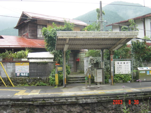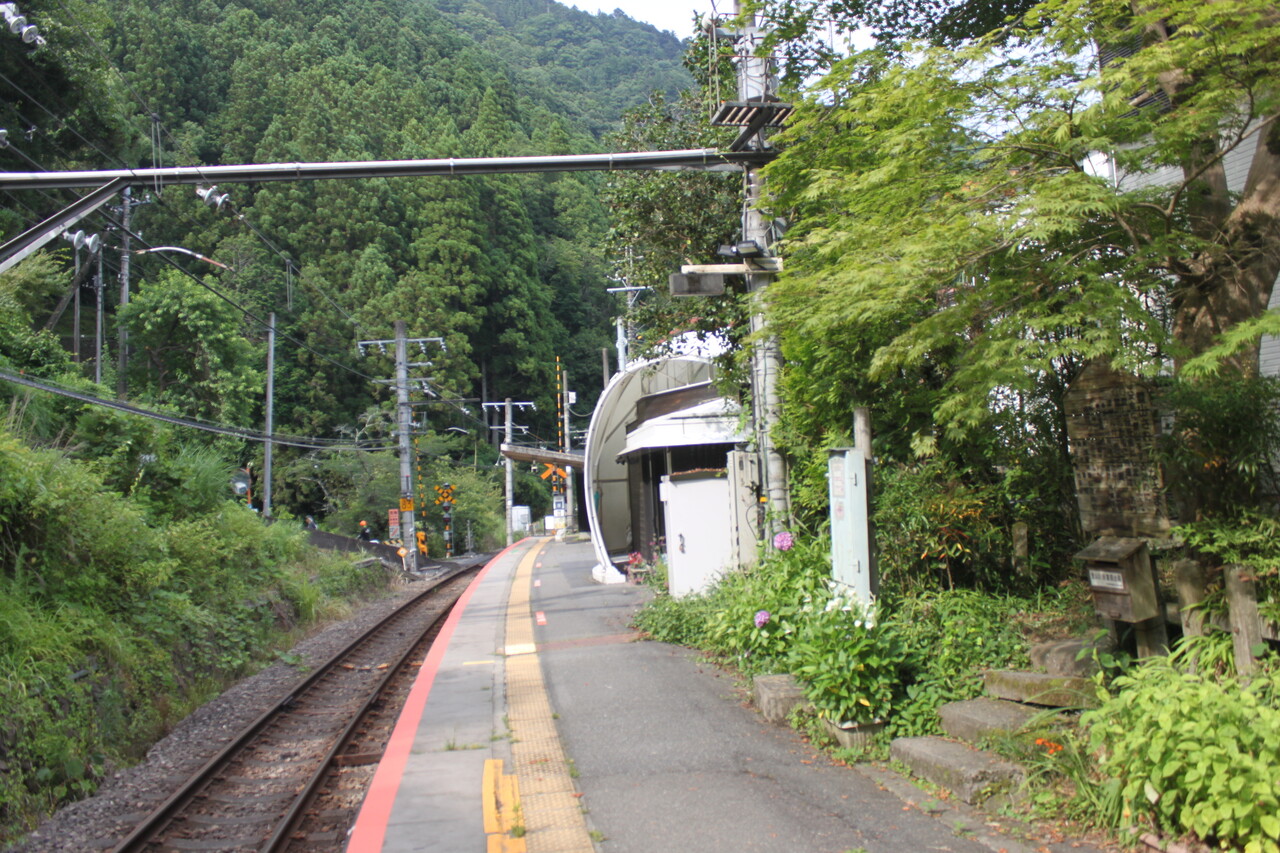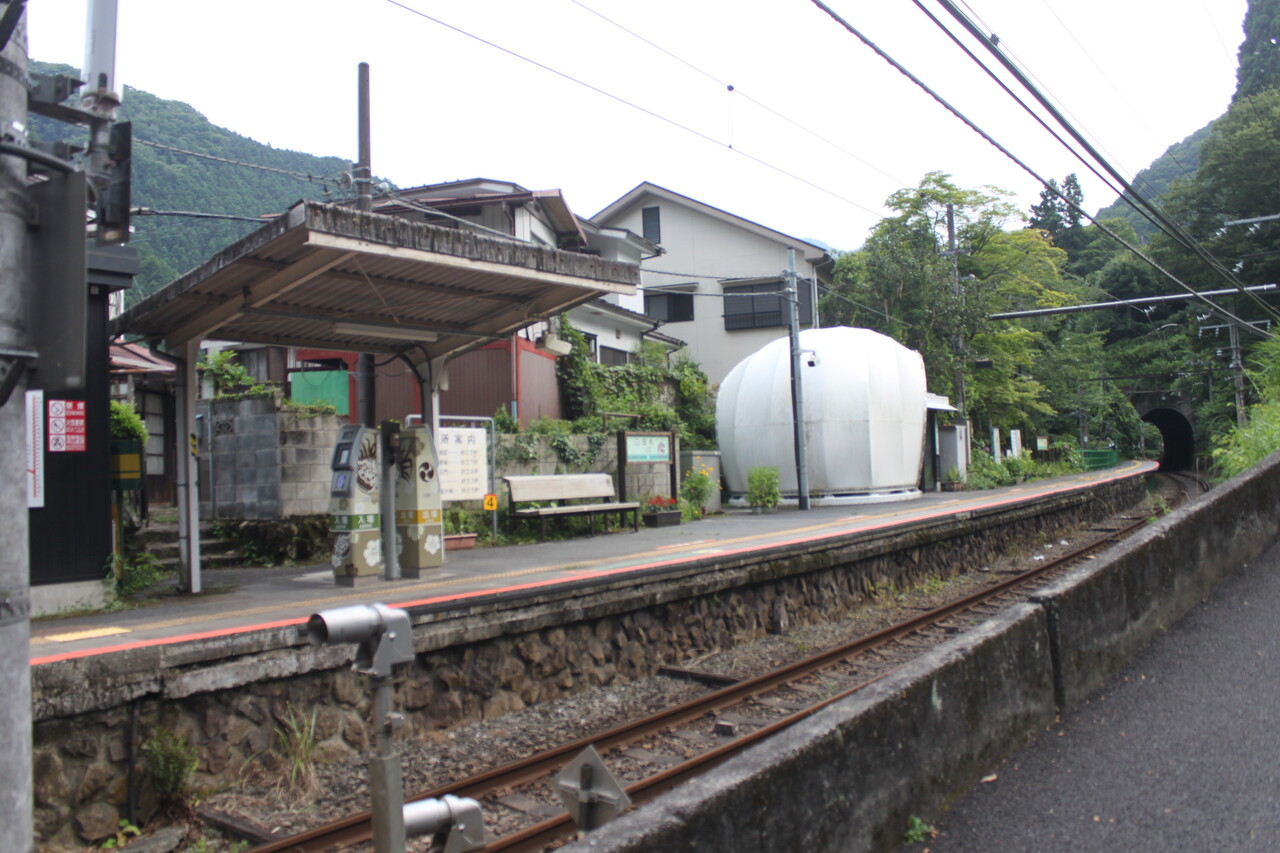 これが駅です。生活に密着していて民家の表玄関がホームと直結している仰天構造の駅です。