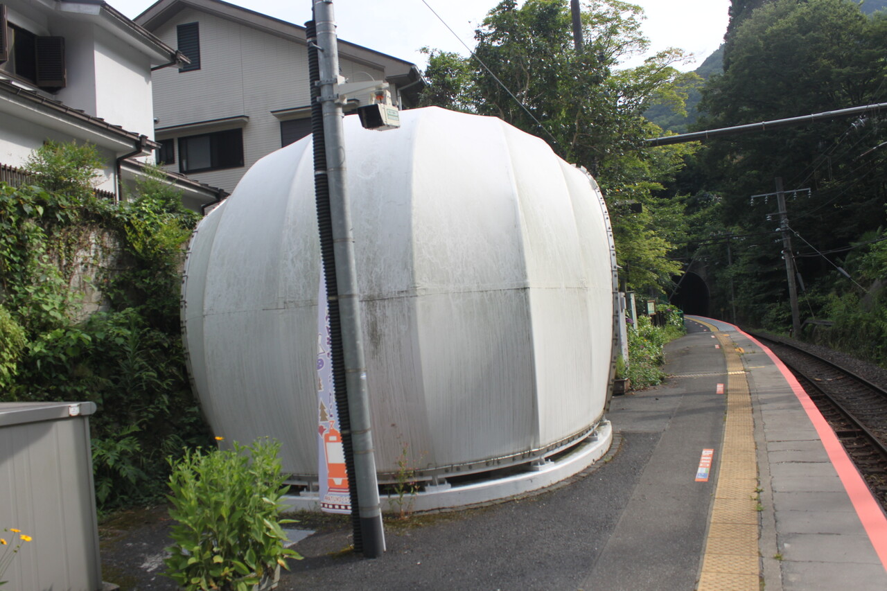 ホームの奥多摩方にはドーム状の待合室が設けられています。
