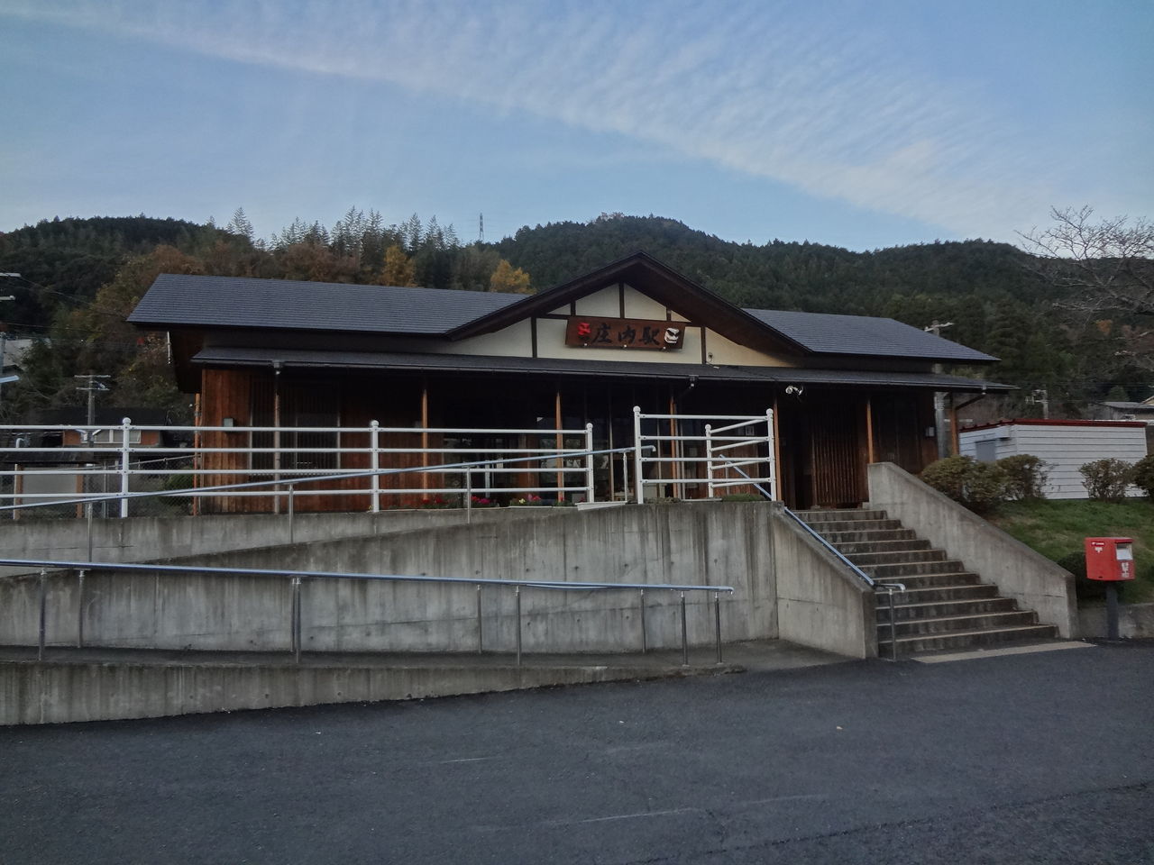 旧庄内エリアの中心地と思いきや、中心地は天神山駅の方が近かったりします。当駅の周囲は簡単な商店街と宅地。駅前から半径100メートル以内に理髪店・美容院が点在しています。
