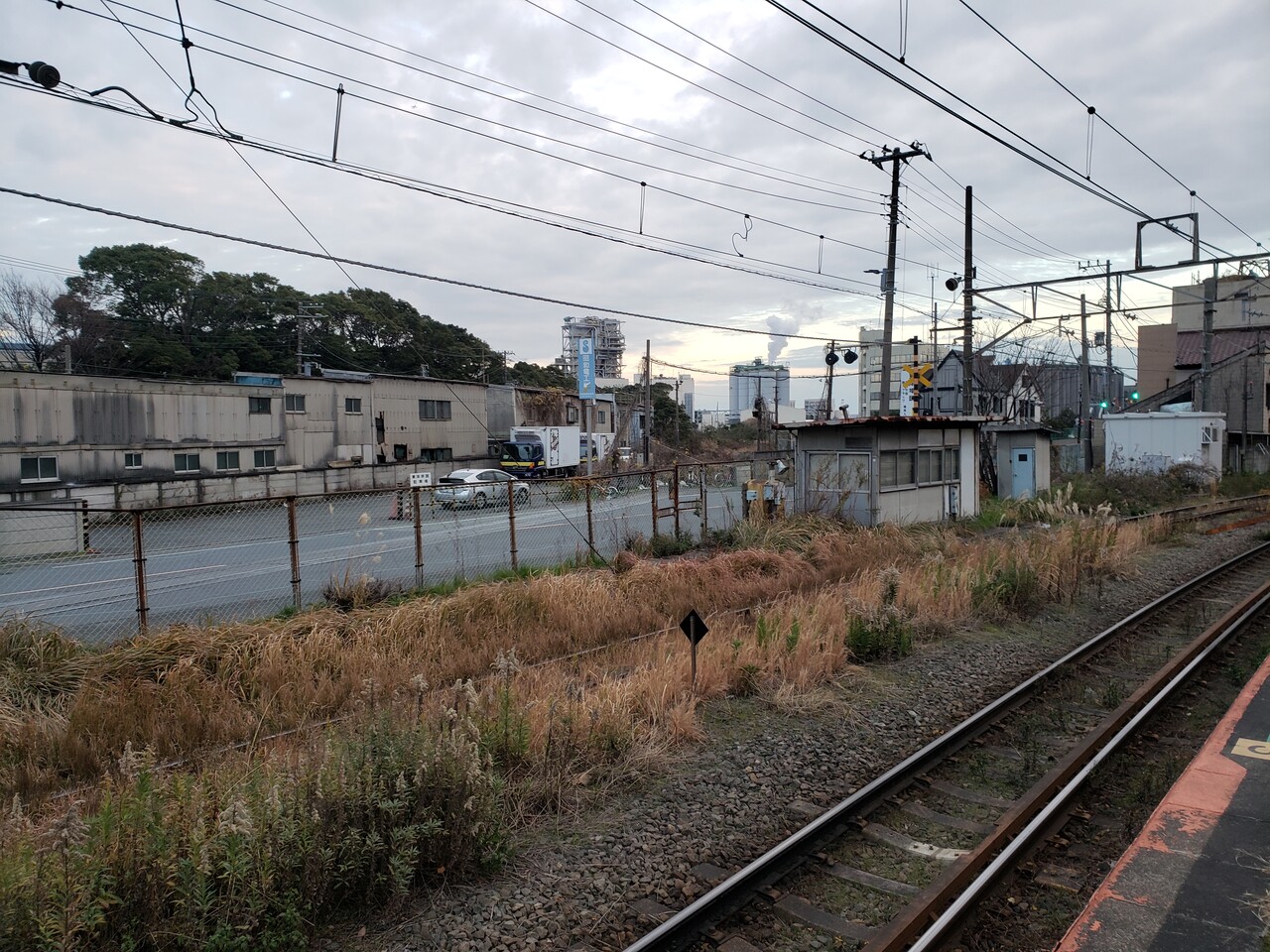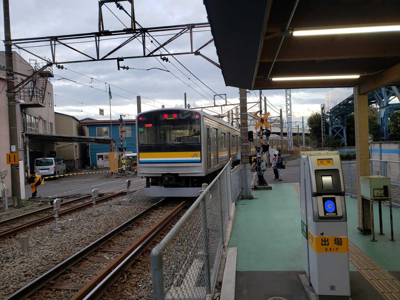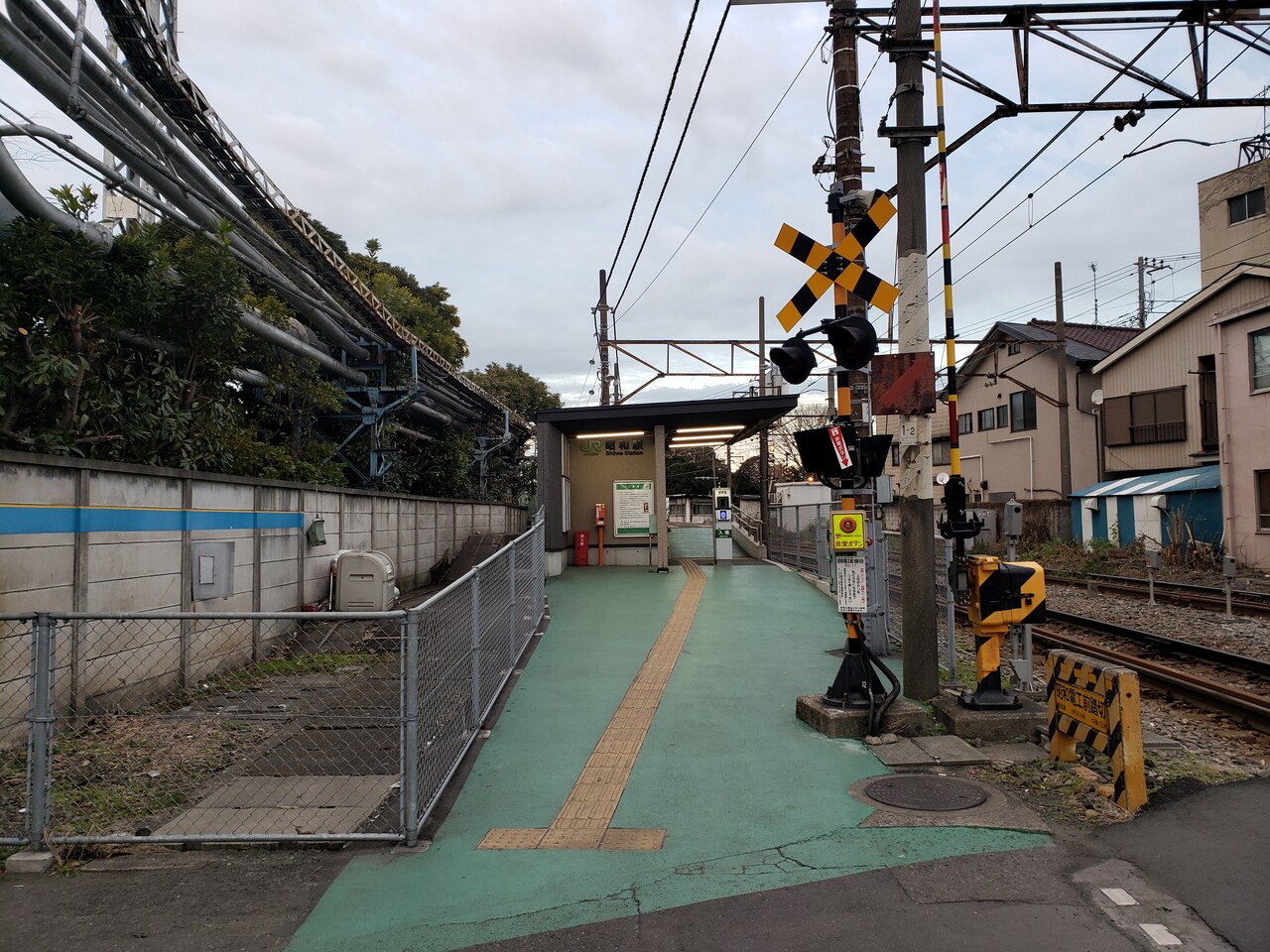 当駅からは鶴見線から分岐していた引込み線があって、頻繁に公道をふさいでDE10型ディーゼル機関車が出入している姿が見えましたが、2010年に引込み線を所有していた工場が閉鎖となり、その様子も過去のものとなってしまいました。